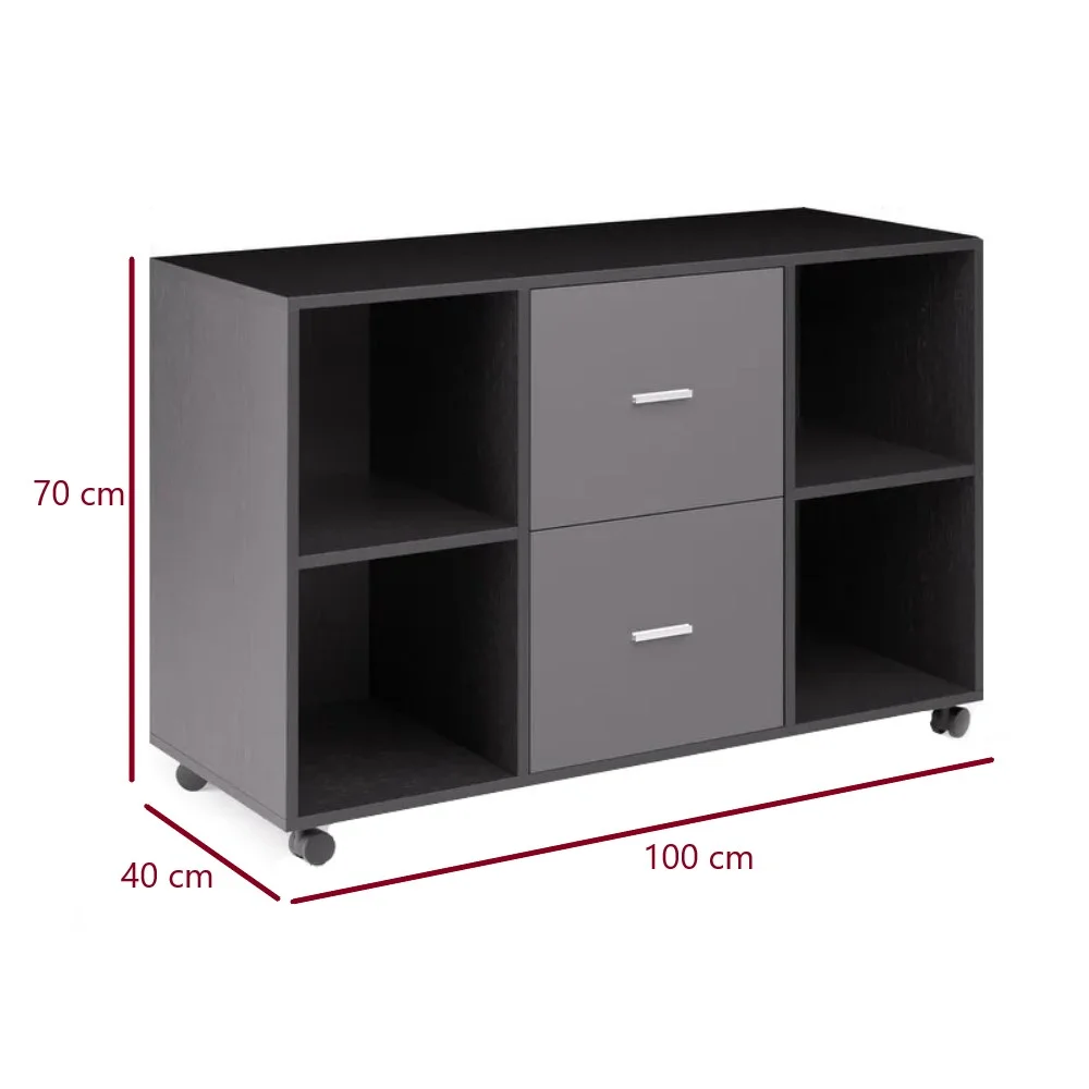 El Archivador Kiran está diseñado para ofrecer una solución práctica y funcional para tu oficina. Fabricado en melamina de 18 mm, garantiza durabilidad y resistencia para el uso diario. Cuenta con dos amplios cajones, cada uno equipado con correderas telescópicas que permiten un acceso cómodo y suave. Estos cajones son ideales para organizar documentos y otros artículos de oficina de manera ordenada. Su amplio espacio asegura que puedas almacenar todo lo que necesites, mientras que las ruedas en la parte inferior permiten moverlo con facilidad para adaptarlo a diferentes espacios. Compacto y funcional, el Archivador Kiran es perfecto para mantener tu oficina organizada y eficiente.