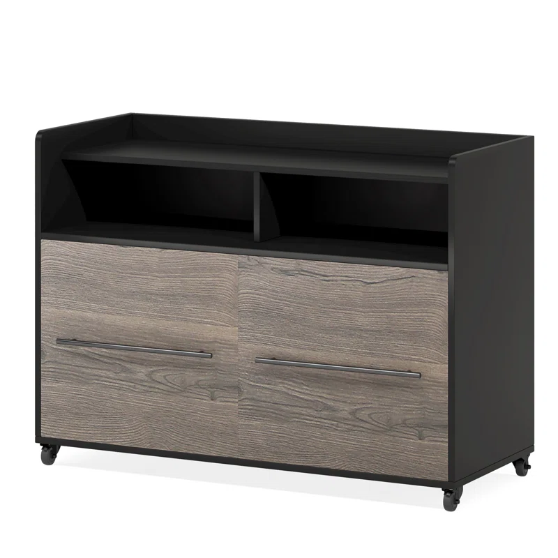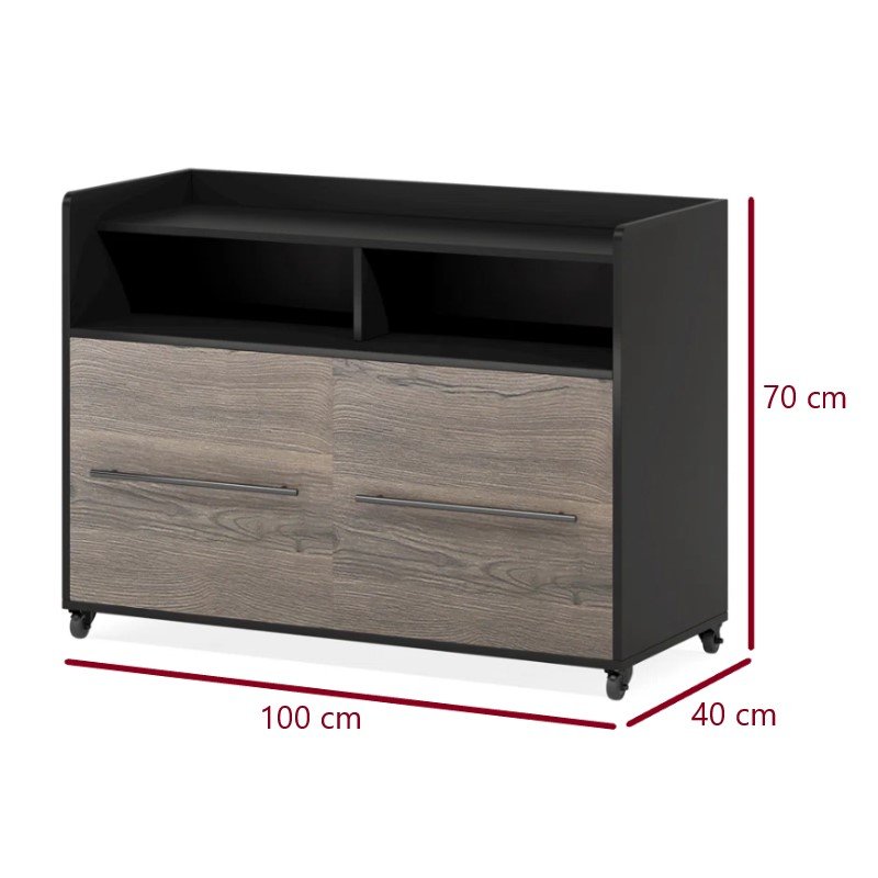 El Archivador Rovan destaca por su diseño moderno y elegante, perfecto para complementar cualquier oficina contemporánea. Su acabado en color negro y nogal africano aporta un contraste sofisticado, mientras que los tiradores plateados añaden un toque de distinción. Con líneas limpias y un estilo refinado, este archivador combina a la perfección estética y funcionalidad, convirtiéndolo en la opción ideal para quienes buscan organización sin sacrificar el diseño.