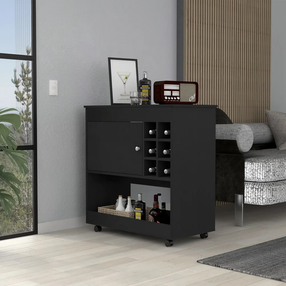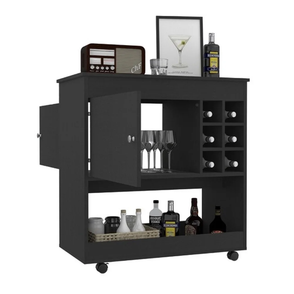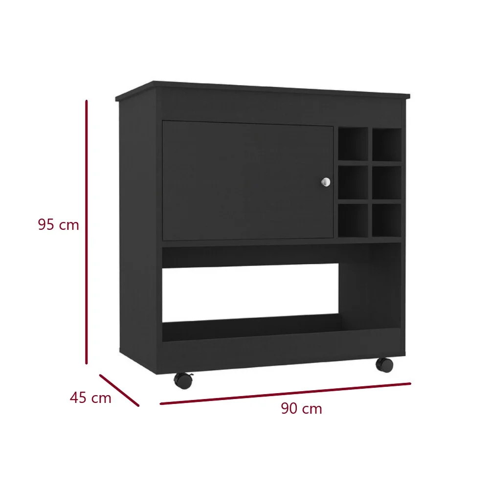 El Bar Vila está diseñado para ofrecerte una solución práctica y elegante en tu espacio de entretenimiento. Fabricado en melamina de 18 mm, garantiza durabilidad y resistencia para el uso diario. Con un amplio espacio de almacenamiento, este bar incluye un botellero con capacidad para seis botellas, lo que facilita la organización de tus bebidas. Además, las ruedas en la parte inferior permiten moverlo con facilidad, adaptándose a tus necesidades de espacio y comodidad. Perfecto para quienes buscan funcionalidad y estilo en su hogar o lugar de reunión.