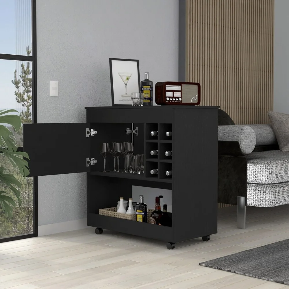 El Bar Vila combina diseño moderno y elegancia con su acabado en color negro, creando un ambiente contemporáneo y sofisticado. Los tiradores plateados agregan un toque de distinción y refinamiento, complementando perfectamente el estilo minimalista del mueble. Su estructura robusta y su diseño depurado hacen de este bar una pieza versátil que se adapta con facilidad a cualquier espacio, ofreciendo tanto funcionalidad como un toque de clase en tu hogar o área de entretenimiento.