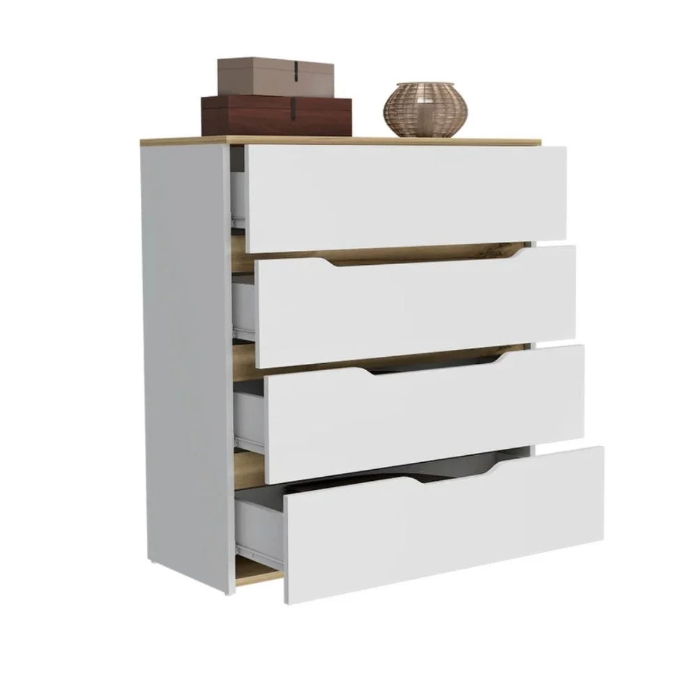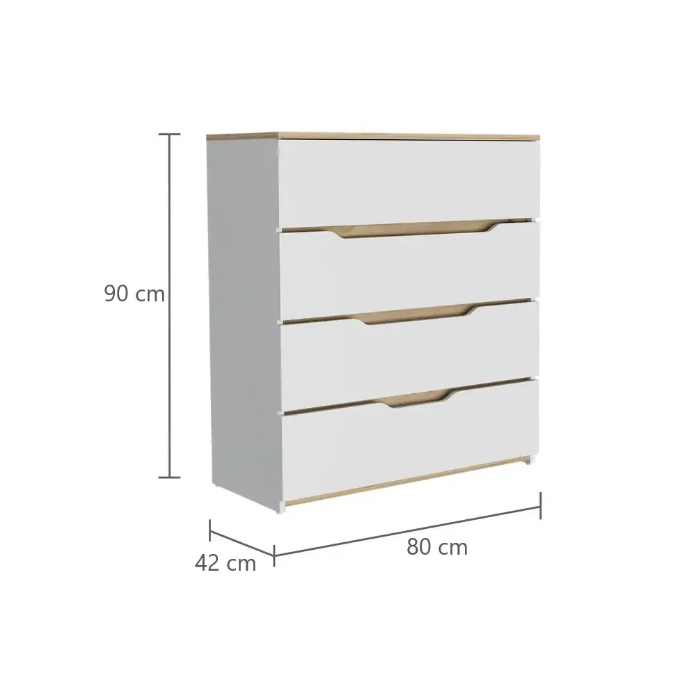 Fabricada en melamina 18mm, la Cómoda California garantiza resistencia y durabilidad, lo que la convierte en una opción confiable para el almacenamiento diario. Sus 4 amplios cajones cuentan con correderas telescópicas que facilitan el acceso y permiten un deslizamiento suave y eficiente. Ya sea para guardar ropa, accesorios o artículos de uso personal, la cómoda ofrece un espacio organizado y funcional, manteniendo todo a la mano y de fácil acceso.