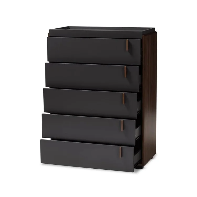 La Cómoda Cecer destaca por su diseño moderno y elegante, combinando el sofisticado color plomo con el cálido tono nogal para crear una pieza con carácter y estilo. Su formato vertical optimiza el espacio sin sacrificar capacidad, mientras que las líneas limpias y equilibradas aportan un aire contemporáneo. Fabricada en melamina de 18 mm, ofrece un acabado resistente y de calidad, ideal para quienes buscan un mueble que se vea tan bien como funciona.