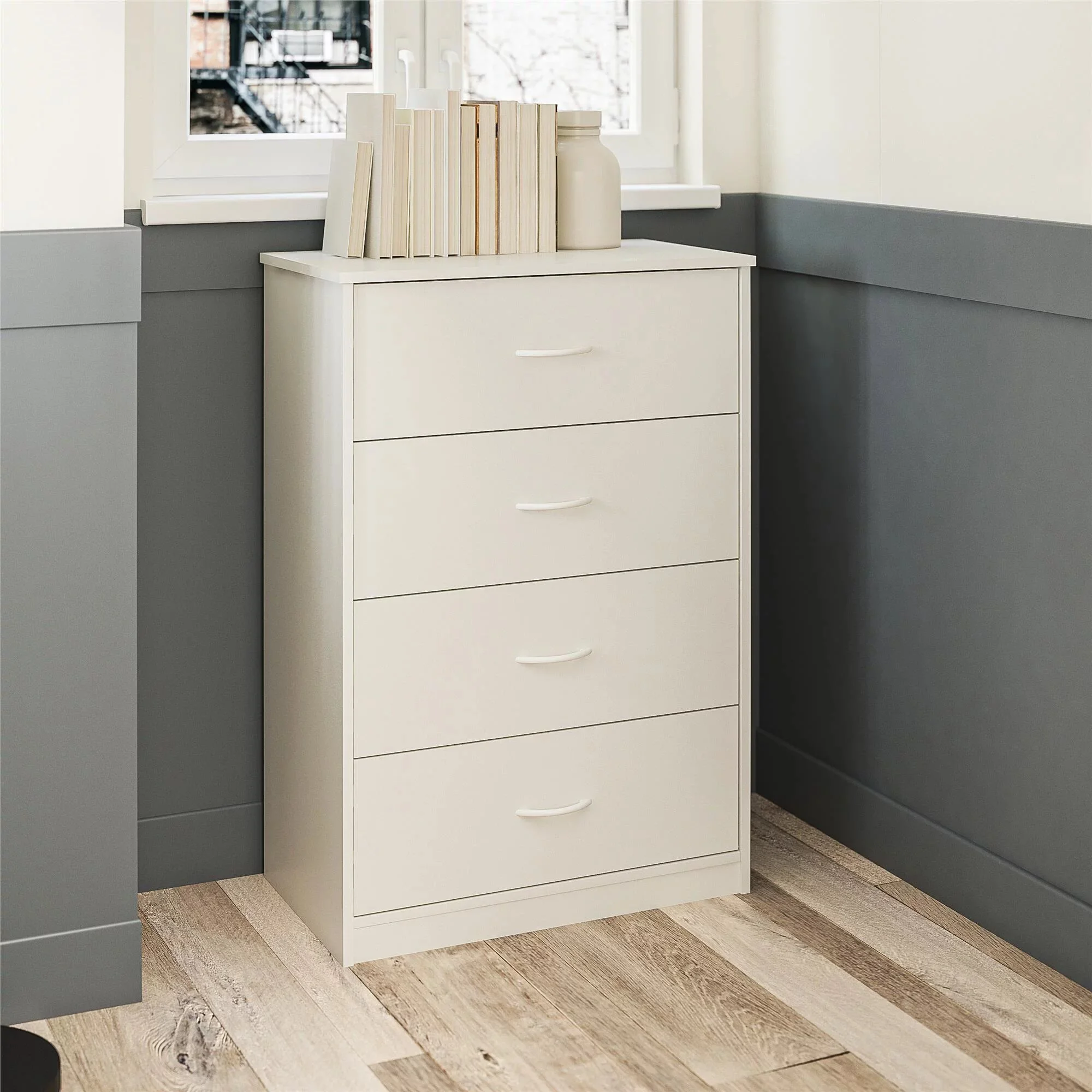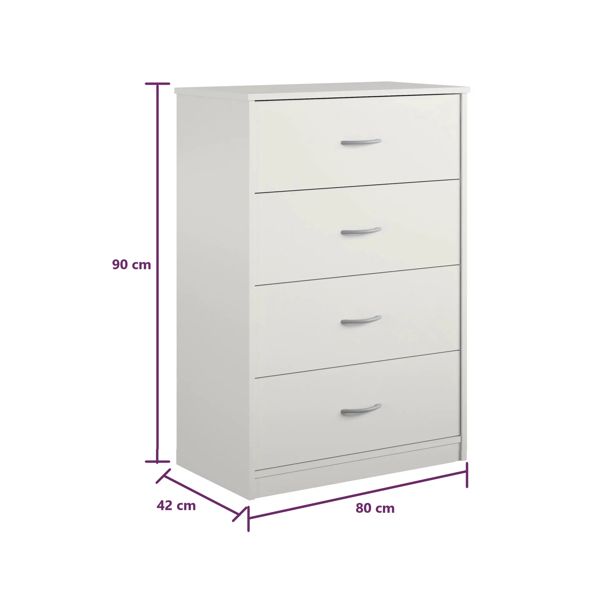 Elaborada con melamina 18mm, la Cómoda Ciao es resistente y duradera. Con 4 amplios cajones, cada uno equipado con correderas telescópicas, garantiza un almacenamiento eficiente y accesible para organizar todo tipo de artículos, desde ropa hasta objetos personales. Este mueble se adapta perfectamente a diferentes necesidades de organización gracias a su espacioso diseño vertical, optimizando el espacio disponible sin sacrificar estilo ni funcionalidad. La Cómoda Ciao es una excelente opción para quienes buscan almacenamiento adicional sin renunciar a un diseño elegante y moderno.