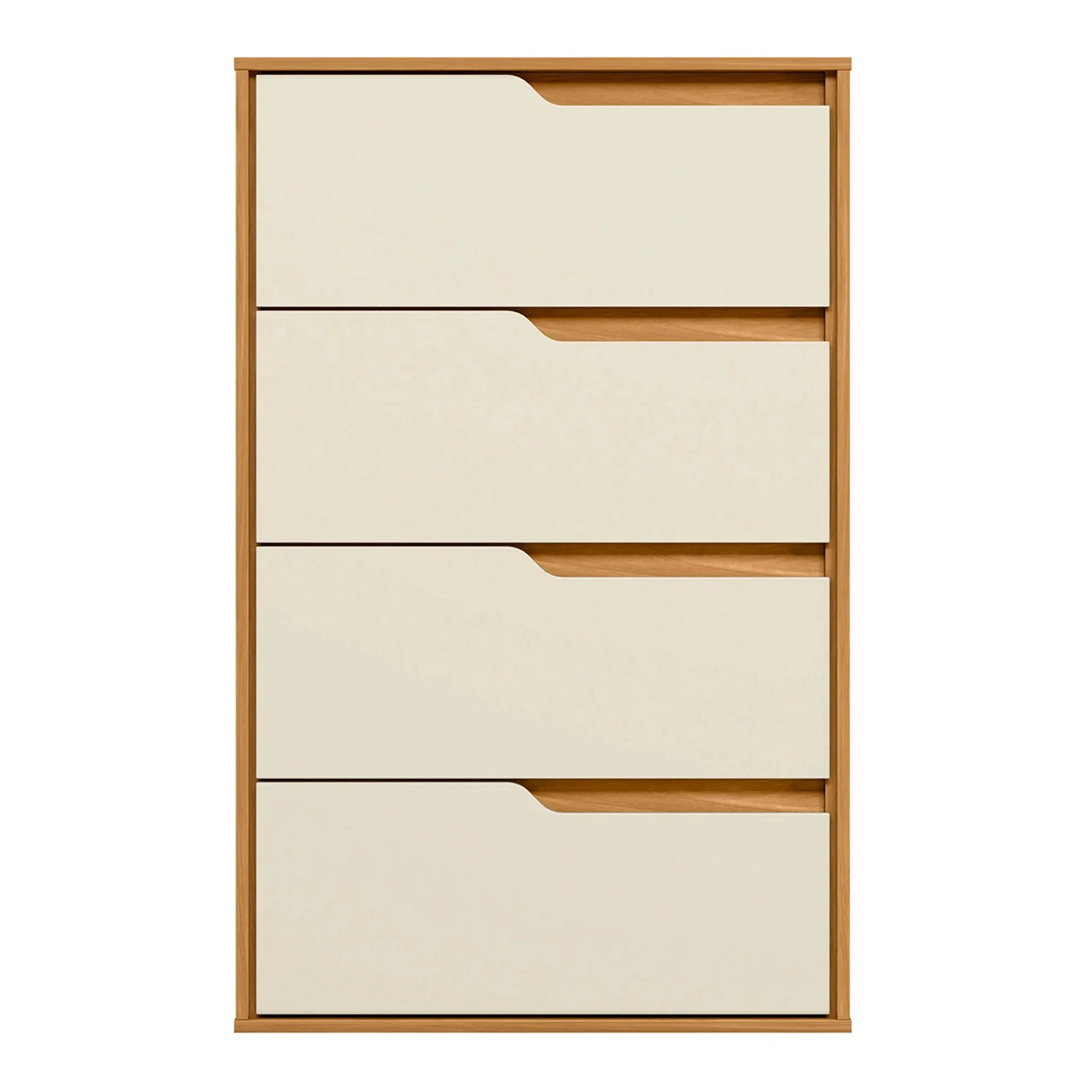 La Cómoda Detroid cuenta con cuatro amplios cajones equipados con correderas telescópicas, que permiten un deslizamiento suave y un acceso completo al interior. Su diseño vertical la convierte en una solución ideal para espacios reducidos, ofreciendo gran capacidad de almacenamiento sin sacrificar estilo. Gracias a su construcción resistente y duradera, es perfecta para mantener ropa, accesorios y otros objetos siempre bien organizados.