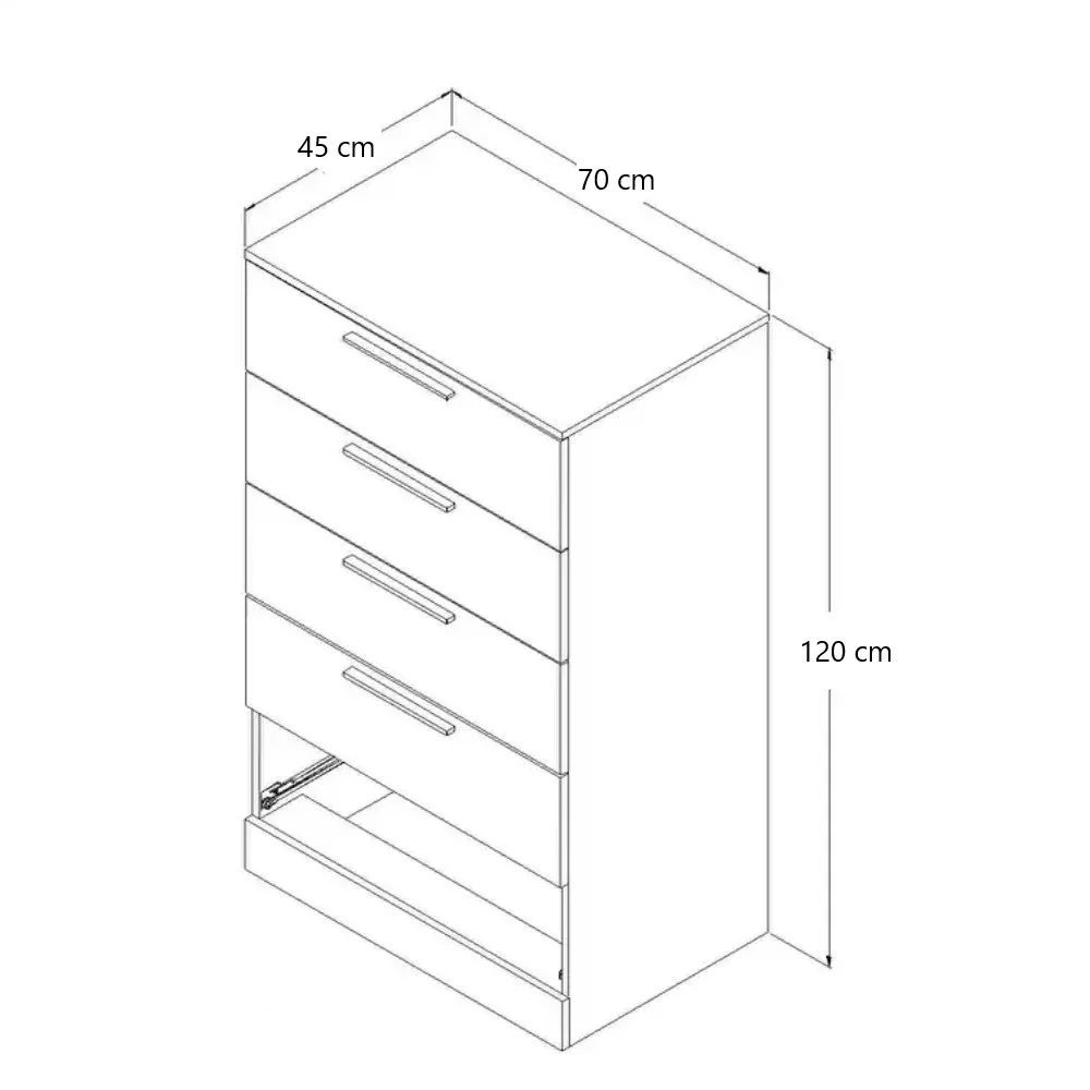 La Cómoda Giner está diseñada para ofrecer máxima practicidad y organización en tu hogar. Su estructura vertical permite optimizar el espacio, mientras que sus cinco amplios cajones con correderas telescópicas aseguran un deslizamiento suave y acceso cómodo a tus pertenencias. Fabricada en melamina de 18 mm, combina durabilidad y calidad, garantizando un mueble resistente y confiable para el uso diario. La Cómoda Giner es la solución ideal para mantener tu hogar en orden con un diseño moderno y funcional.