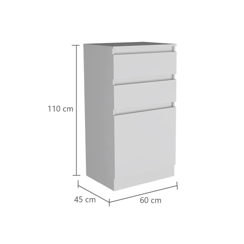 La Cómoda Ives combina un diseño moderno y minimalista que se adapta perfectamente a espacios contemporáneos. Su estructura vertical optimiza el uso del espacio, haciendo de esta cómoda una opción ideal para habitaciones con poco espacio disponible. El acabado en blanco puro aporta luminosidad y una sensación de limpieza, mientras sus líneas simples y elegantes se integran fácilmente en cualquier estilo de decoración. ¡Con la Cómoda Ives, tendrás una pieza funcional que destaca por su estética moderna y su capacidad!