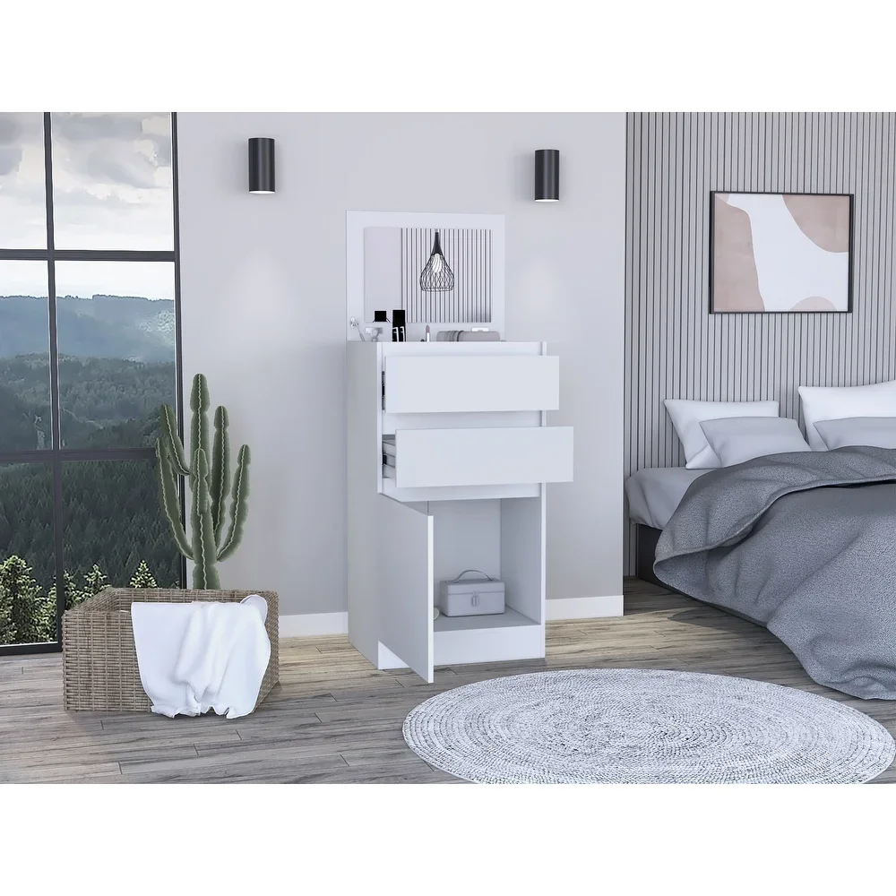 La Cómoda Ives se distingue por su diseño práctico y multifuncional, combinando lo mejor de una cómoda y un tocador en una sola pieza. Con dos cajones equipados con correderas telescópicas, ofrece un almacenamiento cómodo y accesible para tus pertenencias. En la parte inferior, cuenta con un espacio cerrado para guardar objetos más grandes o menos utilizados. Lo más innovador es su parte superior, que oculta un espejo bajo la tapa, junto con un espacio organizado ideal para tus productos de belleza o accesorios, permitiendo que esta cómoda también funcione como un práctico tocador. La Cómoda Ives es la solución perfecta para quienes buscan optimizar espacio sin sacrificar estilo ni funcionalidad.