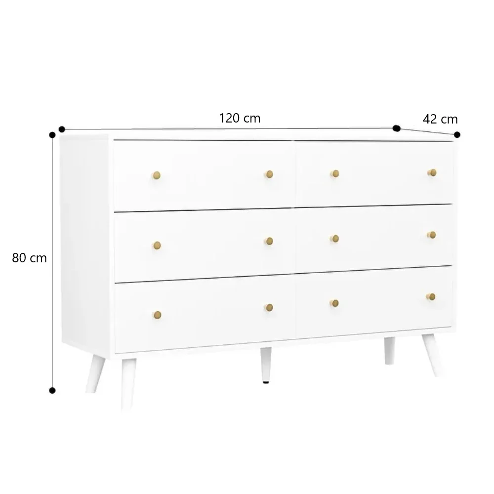 La Cómoda Jover está diseñada para ofrecer una solución práctica y elegante para tus necesidades de almacenamiento. Con un diseño horizontal que optimiza el espacio, cuenta con seis amplios cajones, cada uno equipado con correderas telescópicas que garantizan un deslizamiento suave y cómodo. Fabricada en melamina de 18 mm, combina durabilidad y calidad, asegurando un mueble resistente para el uso diario. La Cómoda Jover es perfecta para mantener tus pertenencias organizadas mientras complementa tu espacio con su diseño moderno y funcional.