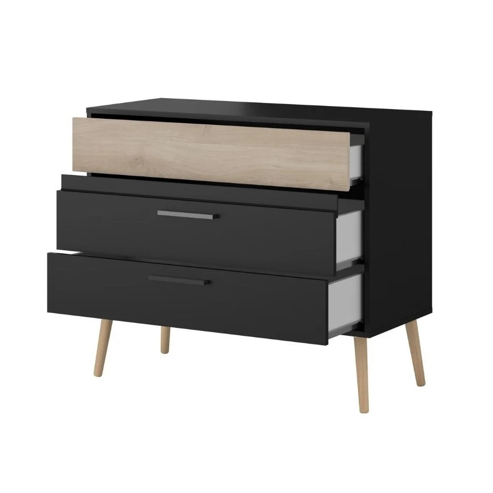 Elaborada en melamina 18mm, la Cómoda Kasoa ofrece un amplio espacio para organizar tus pertenencias. Con 3 cajones, cada uno con correderas telescópicas, proporciona un sistema de almacenamiento eficiente y duradero. Su diseño compacto y resistente hace de este mueble una opción ideal para mantener todo organizado de manera práctica, asegurando que tu espacio esté siempre ordenado y libre de desorden.