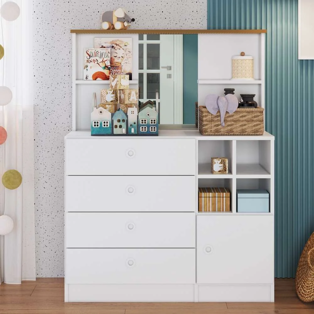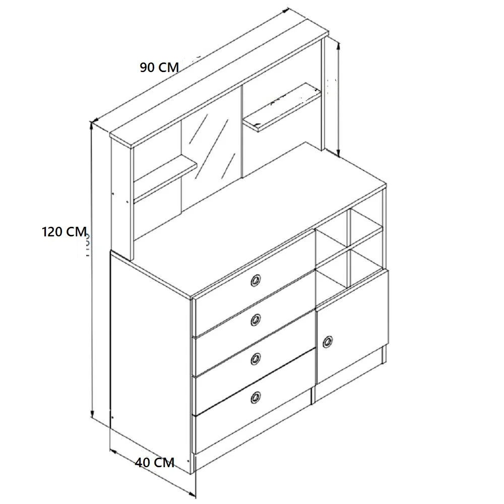 Equipada con 4 amplios cajones, cada uno con correderas telescópicas para un deslizamiento suave y cómodo, esta cómoda brinda amplio espacio de almacenamiento para mantener la habitación organizada. Su diseño pensado para la comodidad y la organización permite guardar ropa, accesorios u otros objetos de manera eficiente, convirtiéndola en una opción perfecta para quienes buscan estética y funcionalidad en un solo mueble.