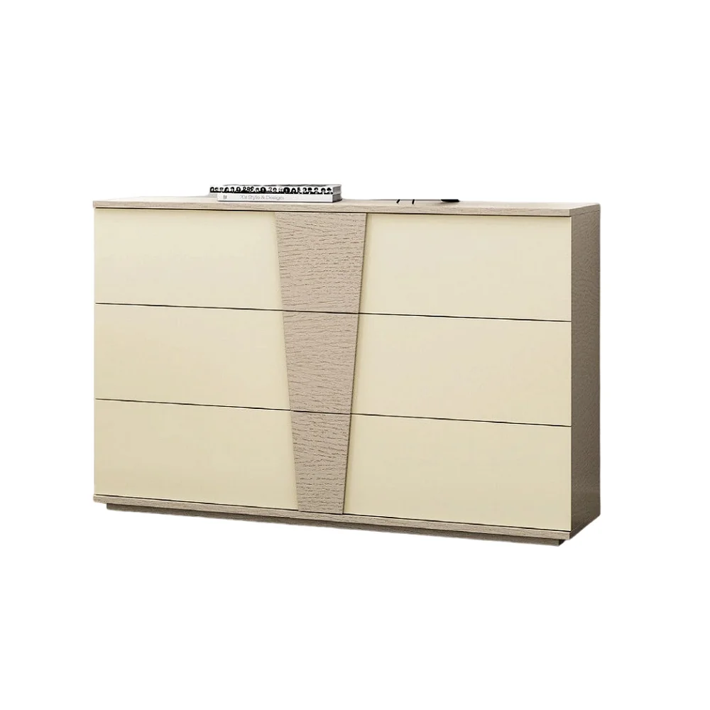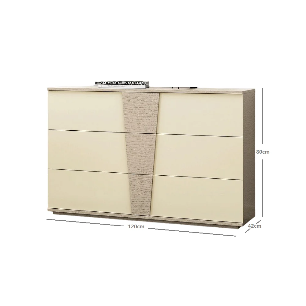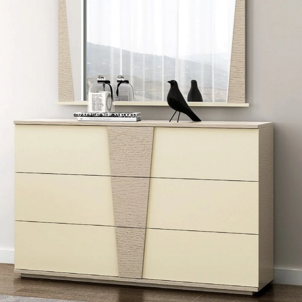 La Cómoda Macarena es una pieza que combina estilo moderno con un toque distintivo y llamativo gracias a su combinación de colores crema y santorini. Esta combinación crea un contraste suave y sofisticado, ideal para añadir personalidad al dormitorio sin sobrecargar el ambiente. Su diseño minimalista y sin tiradores aporta una sensación de limpieza visual y modernidad, además de integrarse con facilidad en diferentes estilos decorativos, desde lo contemporáneo hasta lo nórdico. Fabricada en melamina de 18 mm, asegura resistencia, estabilidad y una larga vida útil, soportando el uso diario sin perder su atractivo.