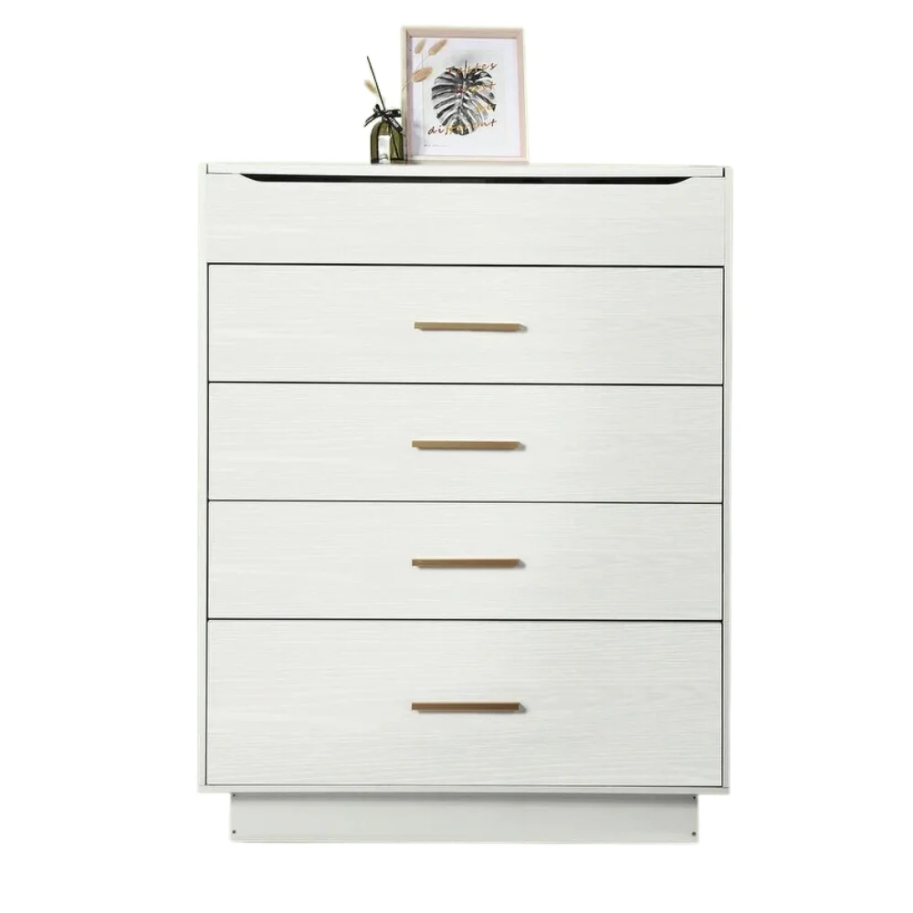 La Cómoda Mirel es la perfecta fusión entre elegancia y funcionalidad. Su acabado en color blanco aporta luminosidad y frescura al dormitorio, mientras que los tiradores dorados añaden un toque de sofisticación y distinción. Con un diseño robusto y bien estructurado, está elaborada en melamina de 18 mm que garantiza resistencia y durabilidad. Su espejo integrado en la tapa la convierte en una pieza versátil, funcionando tanto como cómoda tradicional como tocador, ideal para quienes buscan optimizar el espacio sin renunciar al estilo.