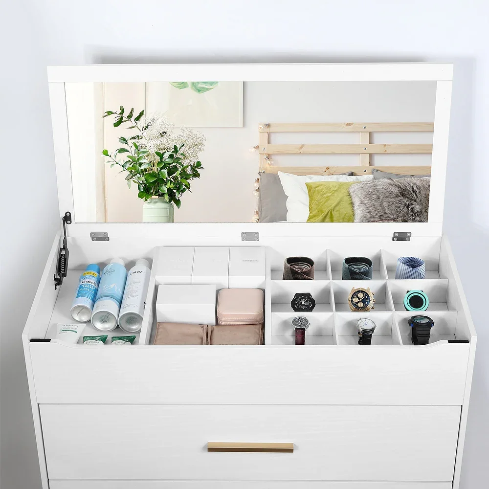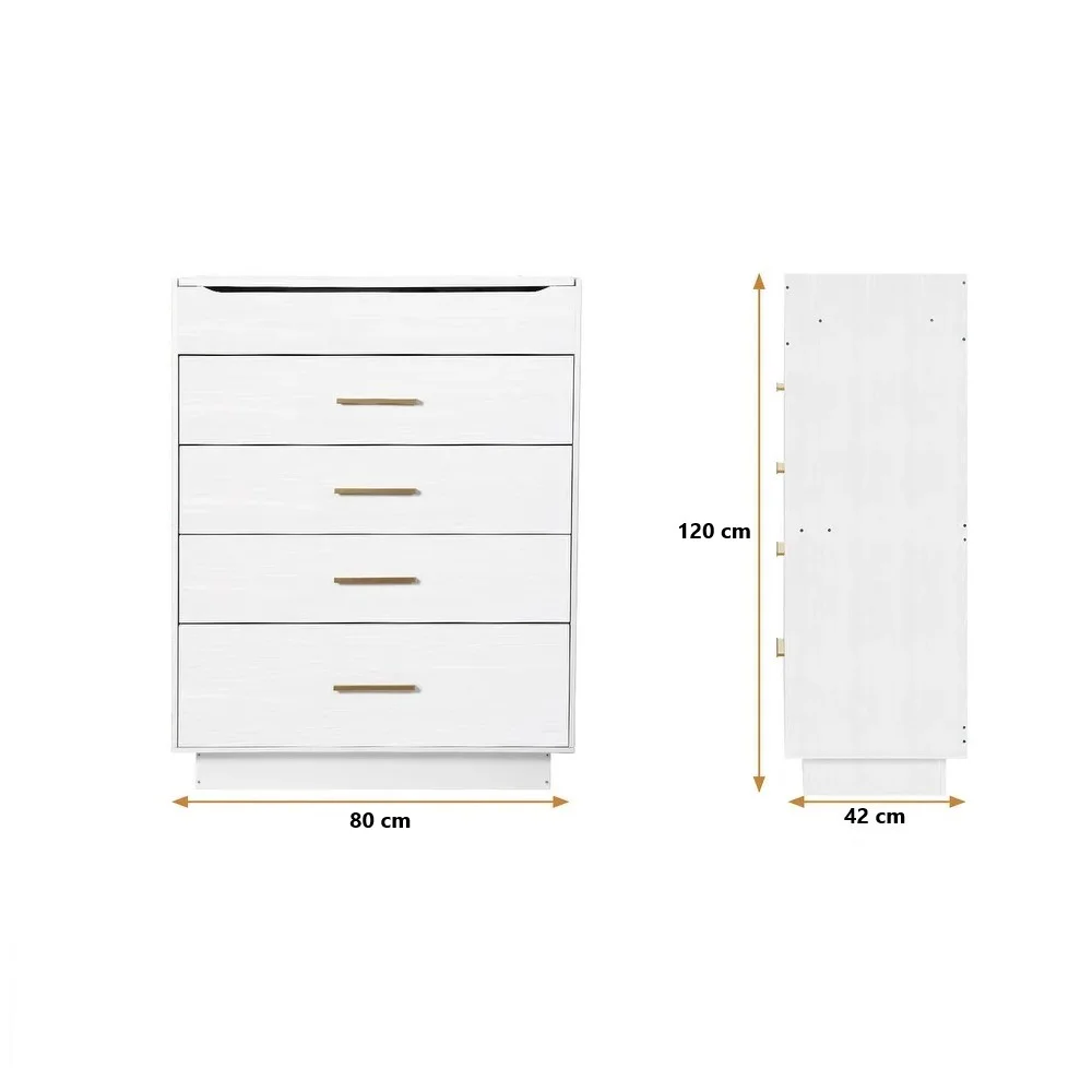 La Cómoda Mirel no es solo un mueble de almacenamiento, sino una solución multifuncional para el dormitorio. Sus 4 cajones ofrecen amplio espacio para guardar ropa, accesorios o artículos personales de forma organizada. Al levantar la tapa, revela un espejo integrado y un práctico organizador, perfecto para maquillaje, joyas o productos de cuidado personal. Gracias a su diseño sólido en melamina de 18 mm, es resistente al uso diario y fácil de mantener. Su estructura combina la capacidad de una cómoda con la practicidad de un tocador, haciendo de ella un mueble imprescindible para un dormitorio bien equipado.