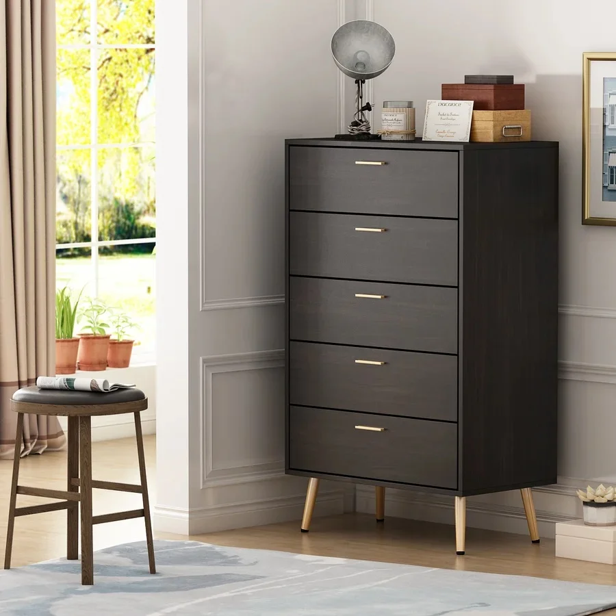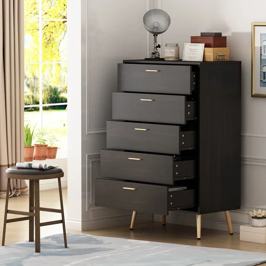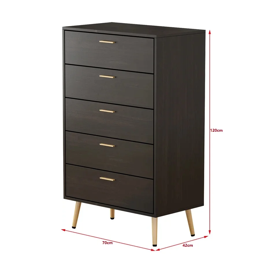 La Cómoda Omma está pensada para ofrecer amplio espacio de almacenamiento con sus 5 cajones grandes, ideales para organizar ropa, accesorios, ropa de cama o cualquier objeto personal. Cada cajón cuenta con correderas telescópicas, que aseguran un deslizamiento suave, silencioso y duradero, incluso con un uso frecuente. Fabricada en melamina de 18 mm, es un mueble resistente y de fácil mantenimiento, garantizando una larga vida útil. Gracias a su diseño vertical, elegante y funcional, la Cómoda Omma es perfecta para mantener el orden sin renunciar al estilo y la sofisticación.