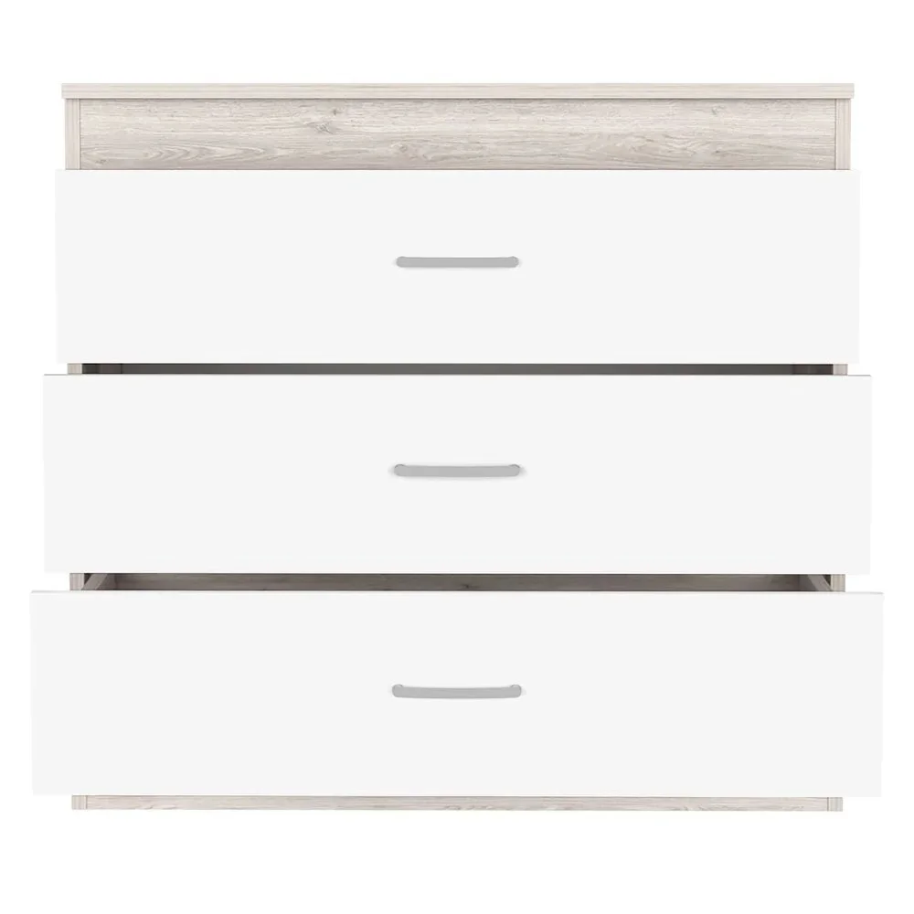 La Cómoda Qin está pensada para brindar orden y practicidad en el dormitorio gracias a sus 3 cajones amplios, perfectos para organizar ropa, accesorios o textiles de manera cómoda y accesible. Cada cajón cuenta con correderas telescópicas, que garantizan un deslizamiento suave y seguro incluso con un uso constante. Su diseño compacto la hace ideal para espacios medianos o pequeños, ofreciendo gran capacidad de almacenamiento sin ocupar demasiado lugar. Su estructura en melamina de 18 mm asegura un mueble resistente, duradero y fácil de mantener, mientras que su estilo moderno con contrastes de color la convierte en una pieza decorativa además de funcional.