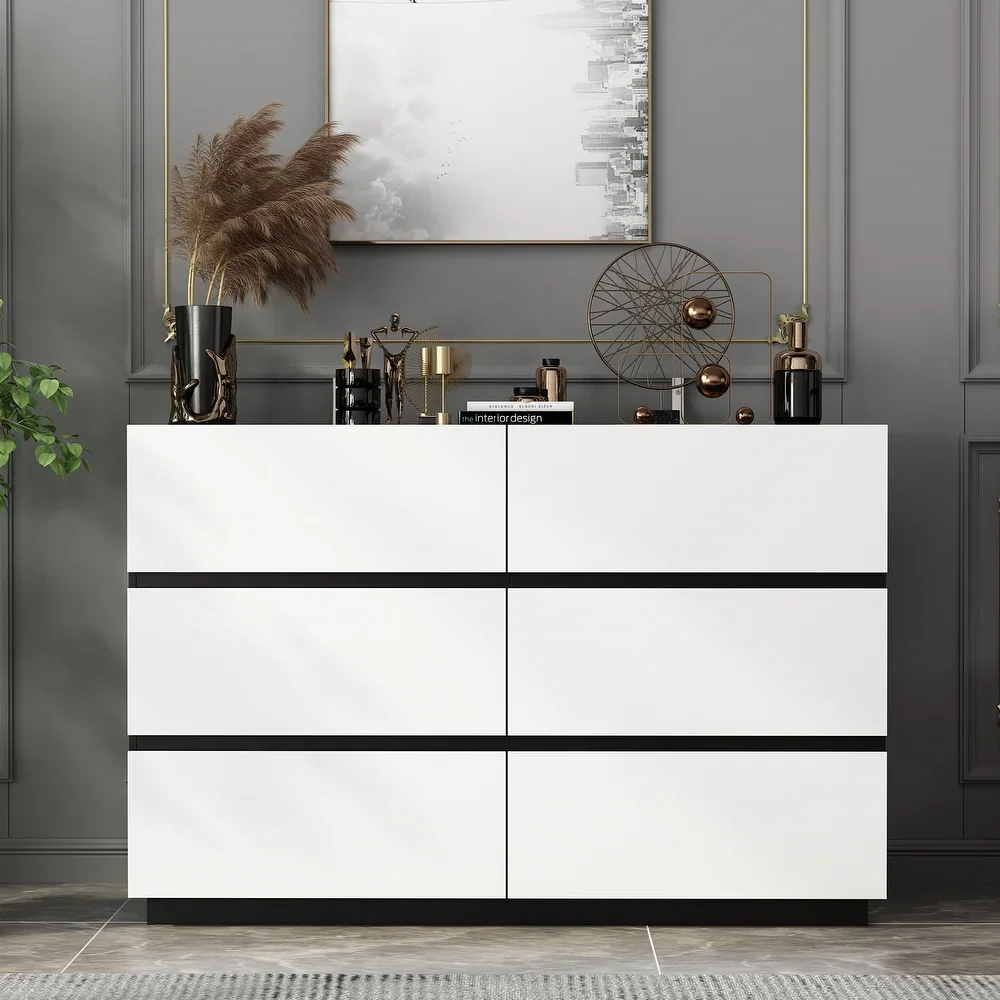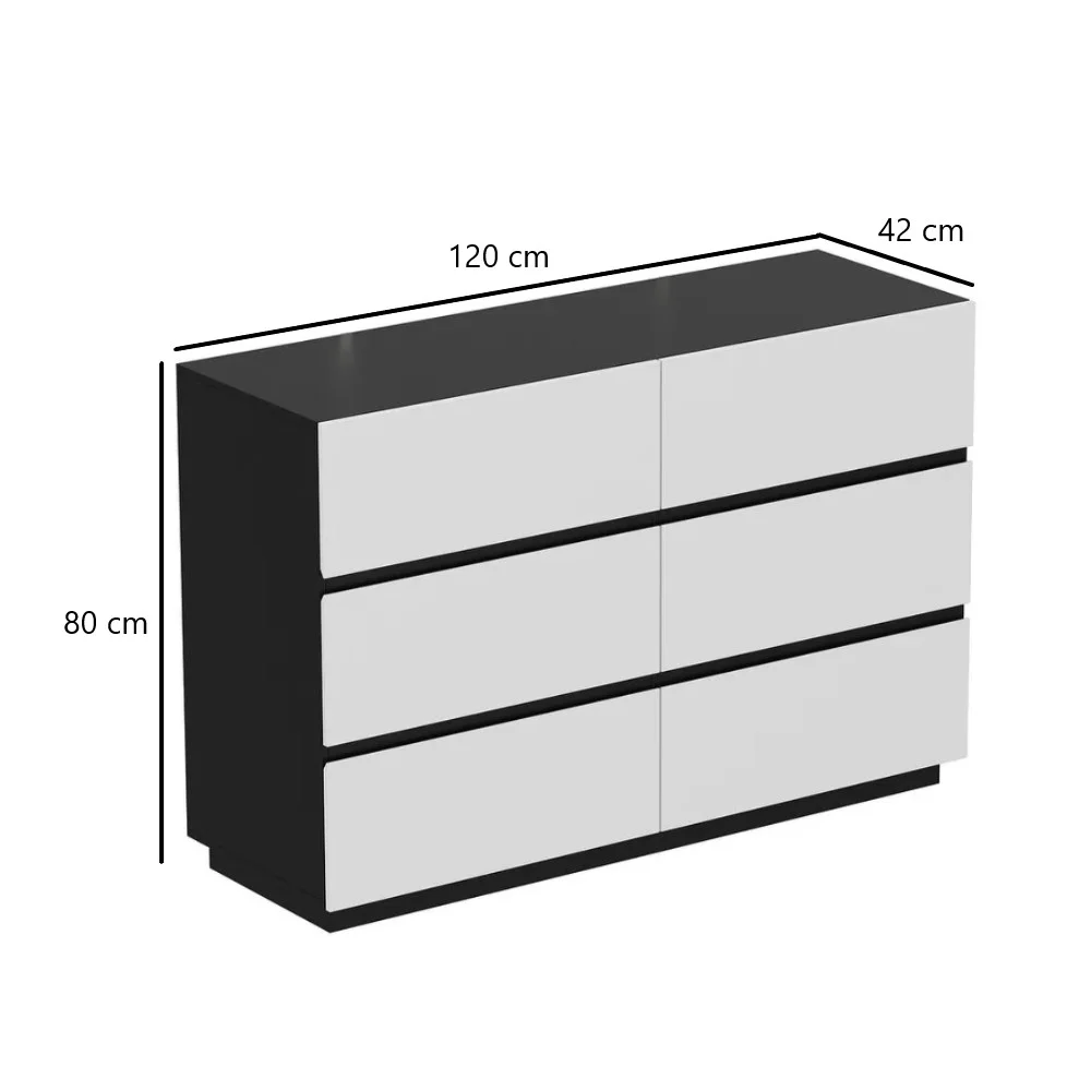 La Cómoda Rosello se caracteriza por su diseño minimalista y contemporáneo, ideal para espacios modernos. Su elegante combinación de colores blanco y negro aporta un contraste visual impactante, creando una pieza que destaca por su simplicidad y sofisticación. Sin tiradores visibles, su diseño limpio y estilizado refuerza su estética minimalista, permitiendo que se integre perfectamente en cualquier ambiente. La Cómoda Rosello es una elección perfecta para quienes buscan un mueble que combine funcionalidad y un estilo sobrio pero elegante.