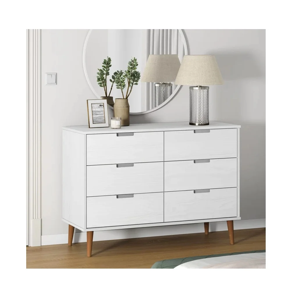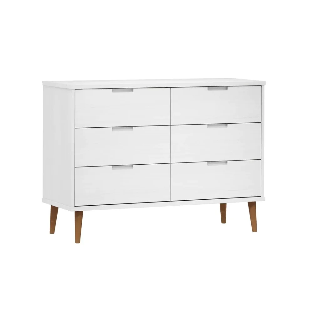 La Cómoda Wali es una propuesta que combina la pureza del color blanco con un diseño minimalista y elegante, ideal para quienes buscan un mueble que aporte frescura y modernidad al ambiente. Su estructura de líneas rectas y limpias transmite serenidad y equilibrio visual, logrando integrarse con facilidad en cualquier estilo decorativo. El detalle de las patas de madera le otorga un sutil contraste natural, aportando calidez y un aire escandinavo que refuerza su carácter moderno. Además, su diseño sin tiradores mantiene una estética pulida y uniforme, resaltando su aspecto minimalista y sofisticado.