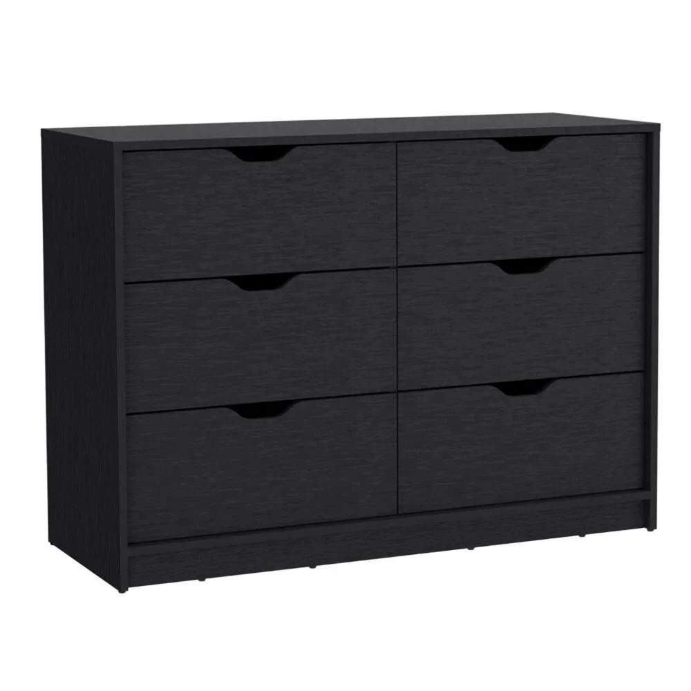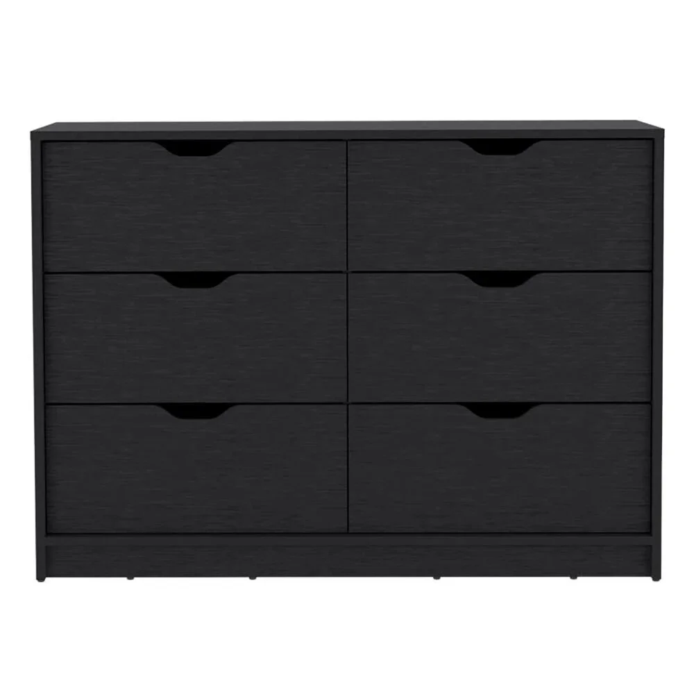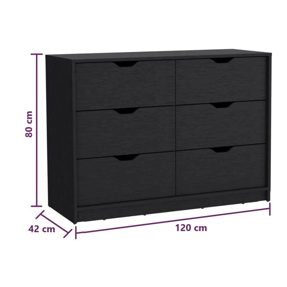 La Cómoda Will resalta por su diseño elegante y sobrio, concebido para quienes buscan un mueble moderno y sofisticado. Su acabado en color negro aporta un aire de distinción y profundidad, logrando que encaje fácilmente en ambientes minimalistas o con un estilo más contemporáneo. El diseño sin tiradores le da un aspecto limpio y uniforme, destacando por sus líneas rectas y su formato horizontal, que aporta equilibrio y presencia en el dormitorio. Está fabricada en melamina de 18mm, material resistente y de alta calidad, que asegura una superficie duradera y con un acabado impecable.