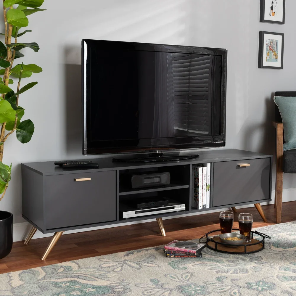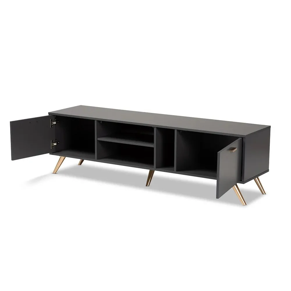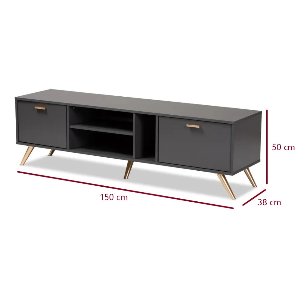 El Centro de Entretenimiento Kelson destaca por su diseño moderno y elegante, con un acabado en color plomo que le da un toque contemporáneo y sofisticado. Los tiradores y patas doradas agregan un contraste sutil pero llamativo, aportando un aire de lujo sin perder la esencia minimalista. Con líneas depuradas y una estética refinada, este centro de entretenimiento no solo optimiza tu espacio, sino que también eleva la decoración de tu hogar, ofreciendo funcionalidad y estilo en cada detalle.