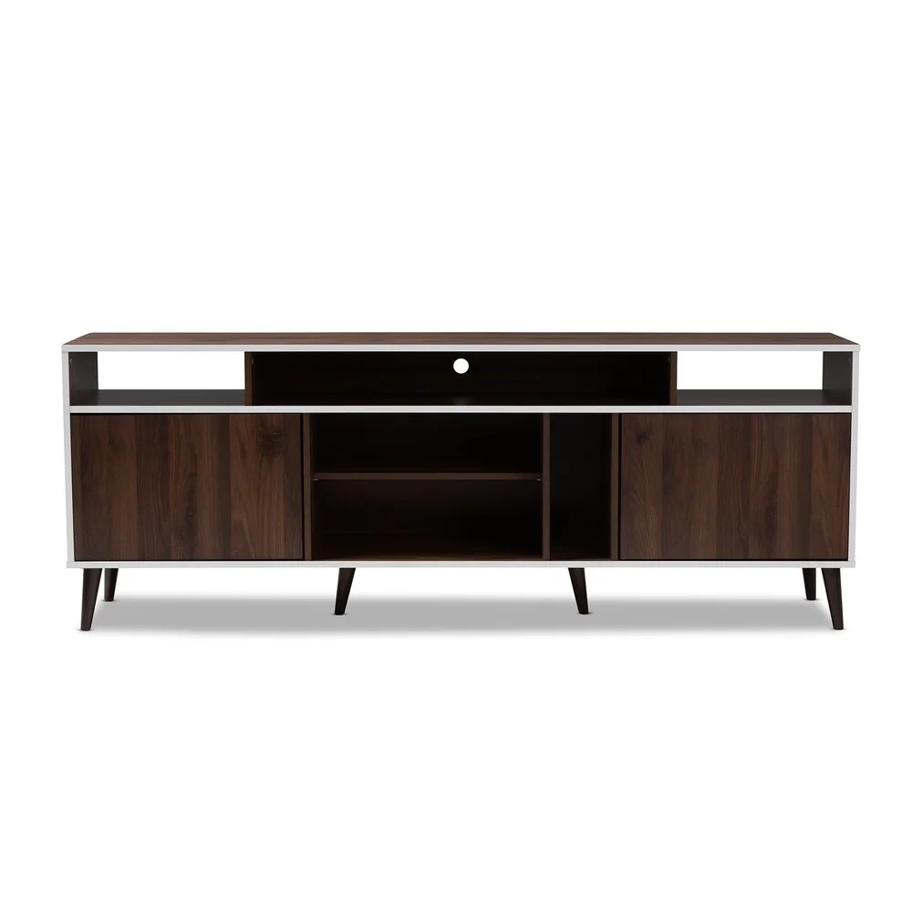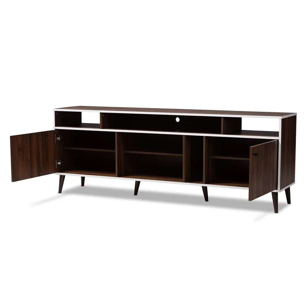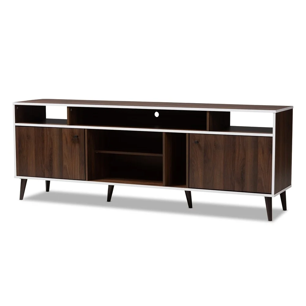 El Centro de Entretenimiento Pineda se caracteriza por su diseño elegante y sofisticado, con un acabado en color Cacao que aporta calidez, combinado con bordes blancos que le dan un toque fresco y moderno. Los tiradores negros y las patas de madera completan su aspecto contemporáneo, creando un equilibrio perfecto entre lo clásico y lo moderno. Este centro de entretenimiento es ideal para quienes buscan un mueble funcional que no renuncie al estilo.