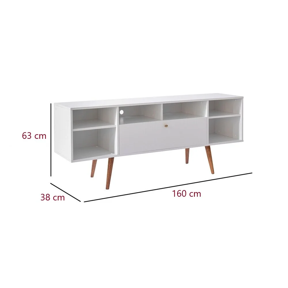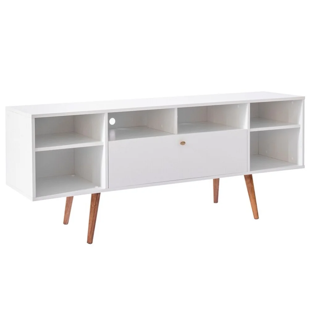 El Centro de Entretenimiento Salme destaca por su diseño moderno y minimalista, con un acabado en color Blanco que aporta luminosidad y frescura a cualquier espacio. Las patas de madera añaden un toque cálido y sofisticado, creando una pieza de mobiliario que se adapta perfectamente a diferentes estilos decorativos. Este mueble es ideal para quienes buscan un centro de entretenimiento funcional con un diseño limpio y contemporáneo.
