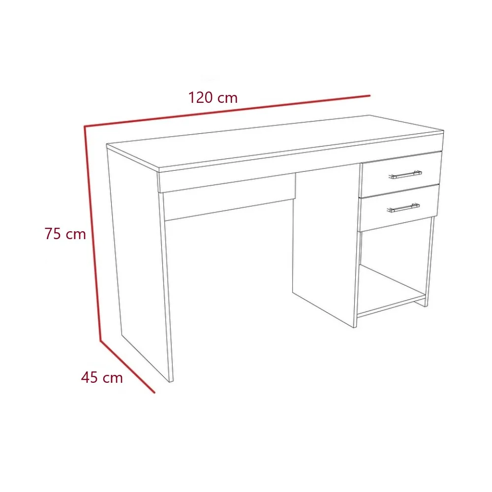 El Escritorio Brodi está diseñado para ofrecerte una solución práctica y funcional en tu oficina o estudio. Fabricado en melamina de 18 mm, garantiza durabilidad y resistencia para el uso diario. Con dos cajones equipados con correderas telescópicas, proporciona un acceso fácil y fluido a tus documentos y artículos esenciales. Además, su amplio espacio superior te permite organizar cómodamente tus materiales de trabajo, manteniendo todo al alcance de la mano. Ideal para quienes buscan un escritorio eficiente y organizado sin sacrificar estilo.