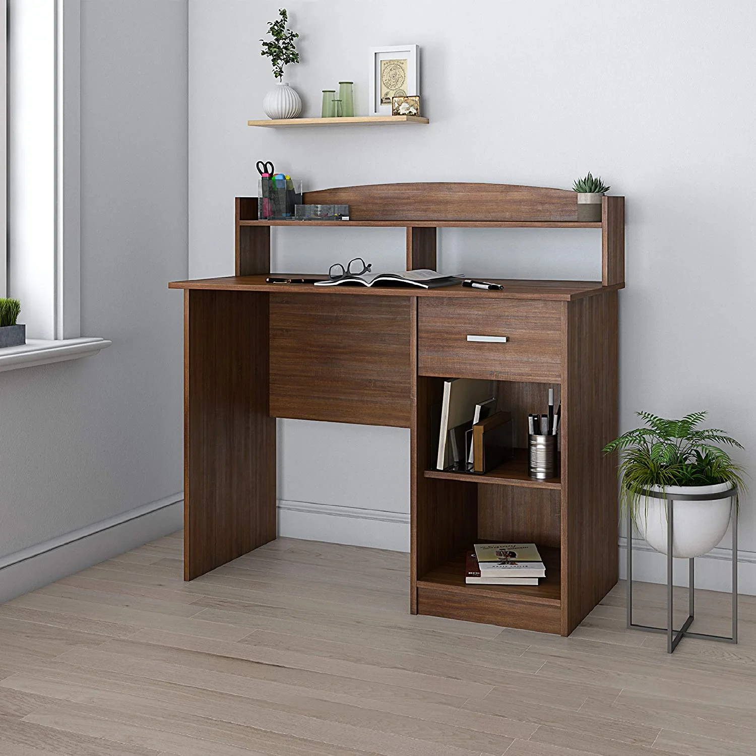 El Escritorio Brooke está diseñado para ofrecer una solución funcional y organizada en tu espacio de trabajo. Fabricado en melamina de 18 mm, garantiza durabilidad y resistencia para el uso diario. Con un amplio espacio en la superficie, podrás organizar tus documentos y materiales de oficina de manera cómoda y accesible. Además, cuenta con prácticas repisas para almacenamiento adicional y un cajón con correderas telescópicas para mantener tus pertenencias organizadas y a la mano. Ideal para quienes buscan un escritorio funcional y elegante que maximice el espacio disponible.