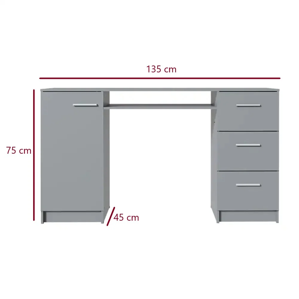 El Escritorio Minasu destaca por su diseño elegante y moderno, ideal para quienes buscan un espacio de trabajo sofisticado y profesional. Su acabado en color Aluminio aporta un toque de frescura y distinción, mientras que los tiradores plateados añaden un detalle de sofisticación. Con líneas limpias y una estructura funcional, este escritorio no solo maximiza el espacio, sino que también eleva la estética de tu oficina o estudio, convirtiéndolo en una opción perfecta para ambientes modernos.