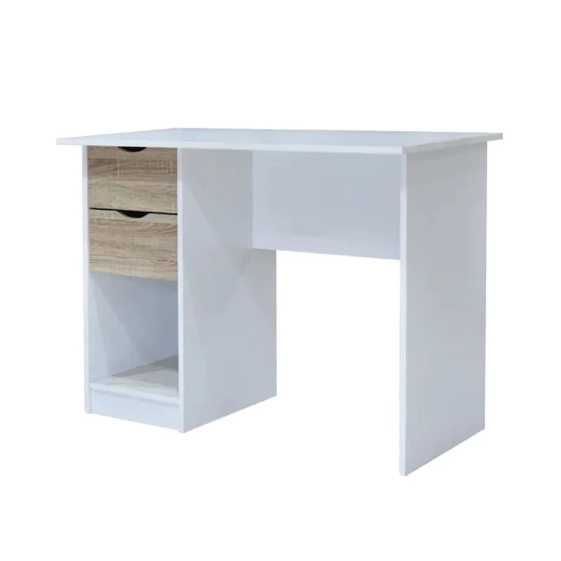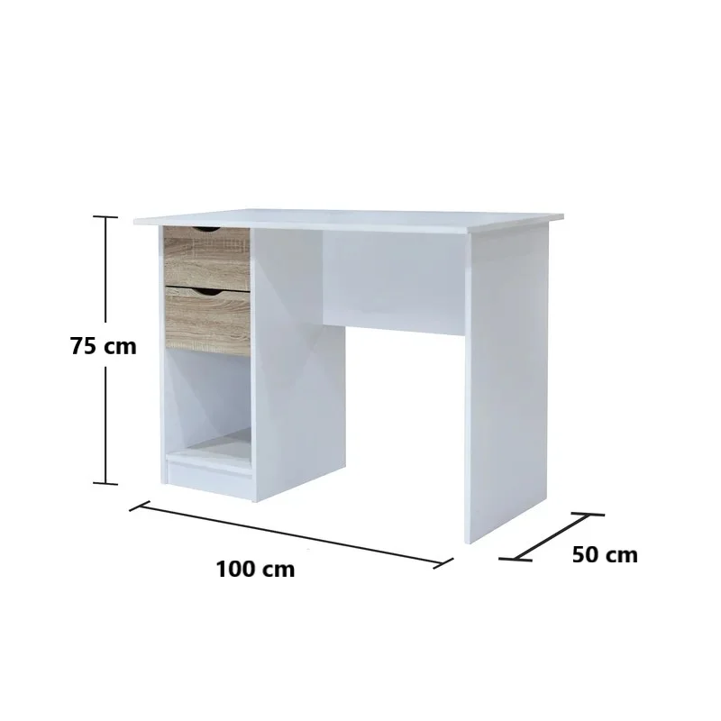 El Escritorio Zagreb está diseñado para ofrecerte una solución práctica y eficiente en tu oficina o espacio de trabajo. Fabricado en melamina de 18 mm, garantiza durabilidad y resistencia para el uso diario. Con dos cajones, cada uno equipado con correderas telescópicas, ofrece un acceso fácil y organizado a tus documentos y objetos personales. Además, su amplio espacio superior permite organizar cómodamente tus materiales de trabajo, manteniendo todo a tu alcance. Ideal para quienes buscan optimizar su espacio sin sacrificar funcionalidad ni estilo.