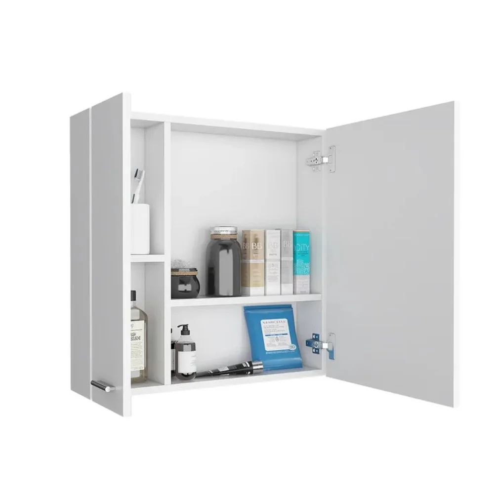 El Estante Ainoa combina modernidad y elegancia en un formato compacto y funcional. Su acabado en color blanco aporta luminosidad y frescura al baño, mientras que sus líneas rectas y limpias refuerzan su estilo contemporáneo. El espejo integrado en su puerta no solo añade un toque decorativo, sino que también multiplica la sensación de amplitud en el ambiente. Fabricado en melamina de 18 mm, ofrece un acabado de calidad y una estructura resistente, ideal para un uso prolongado.