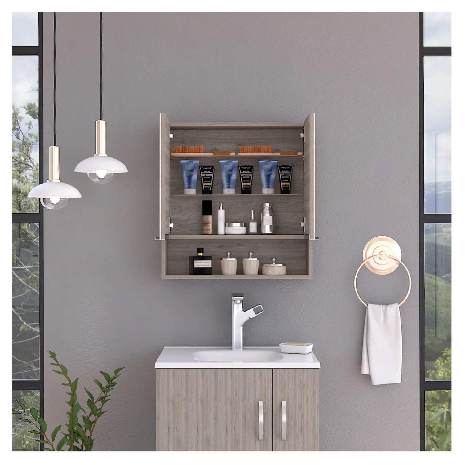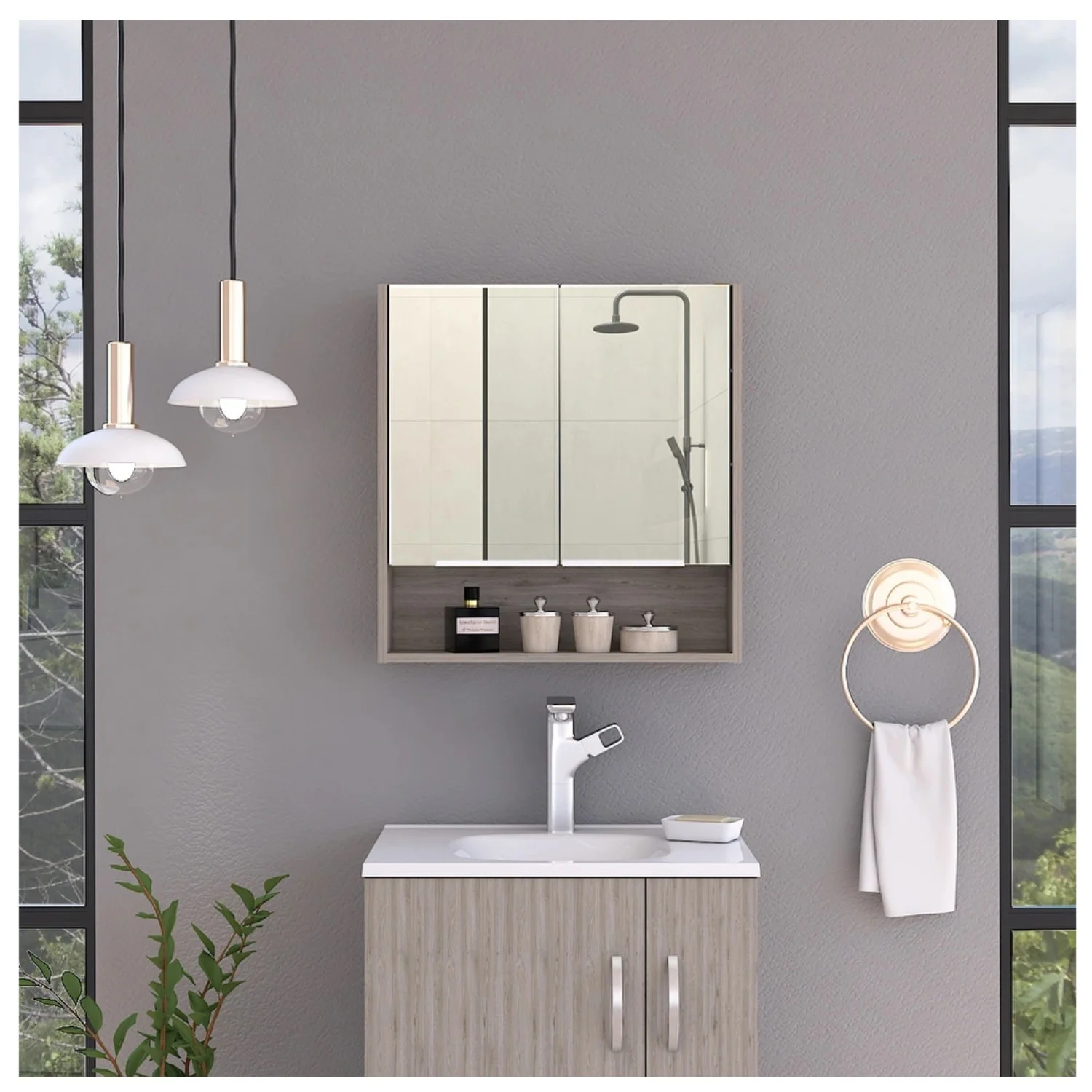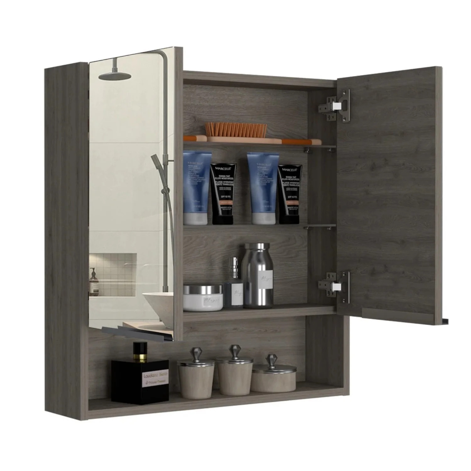 El Estante Alves cuenta con un práctico diseño interior que permite mantener organizados y accesibles los artículos de uso diario. Su amplio espejo frontal resulta perfecto para las rutinas de cuidado personal, mientras que su fijación a la pared optimiza el espacio en el baño. Elaborado en melamina de 18 mm, es resistente, duradero y fácil de limpiar, garantizando funcionalidad y elegancia en un solo mueble.