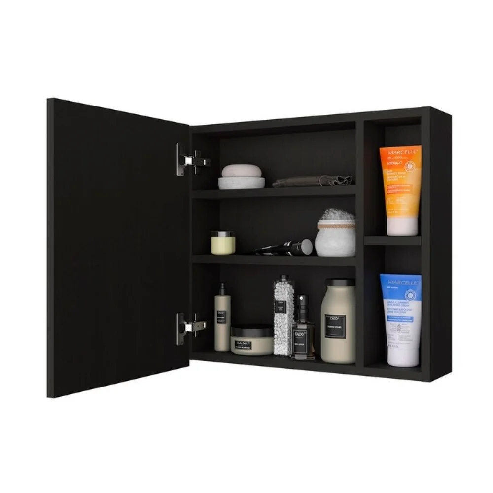 Gracias a su práctico diseño interior, el Estante Moro ofrece suficiente capacidad para organizar artículos de cuidado personal, cosméticos y accesorios de baño de forma ordenada y siempre a mano. Su instalación fijada a la pared optimiza el espacio disponible y permite mantener el suelo libre, lo que facilita la limpieza del área. Es la elección perfecta para quienes buscan funcionalidad, resistencia y estilo en un solo mueble, aportando organización y elegancia al entorno.