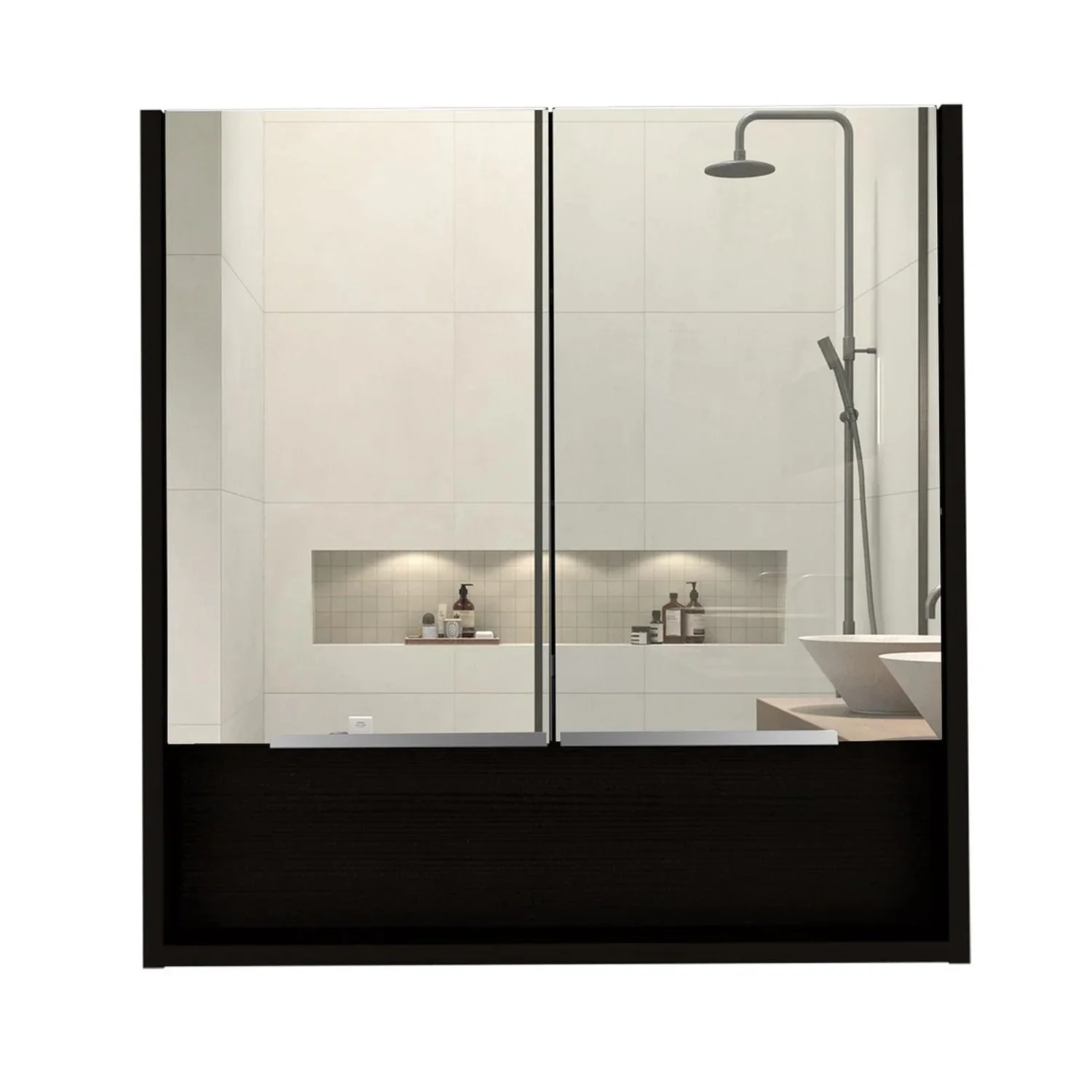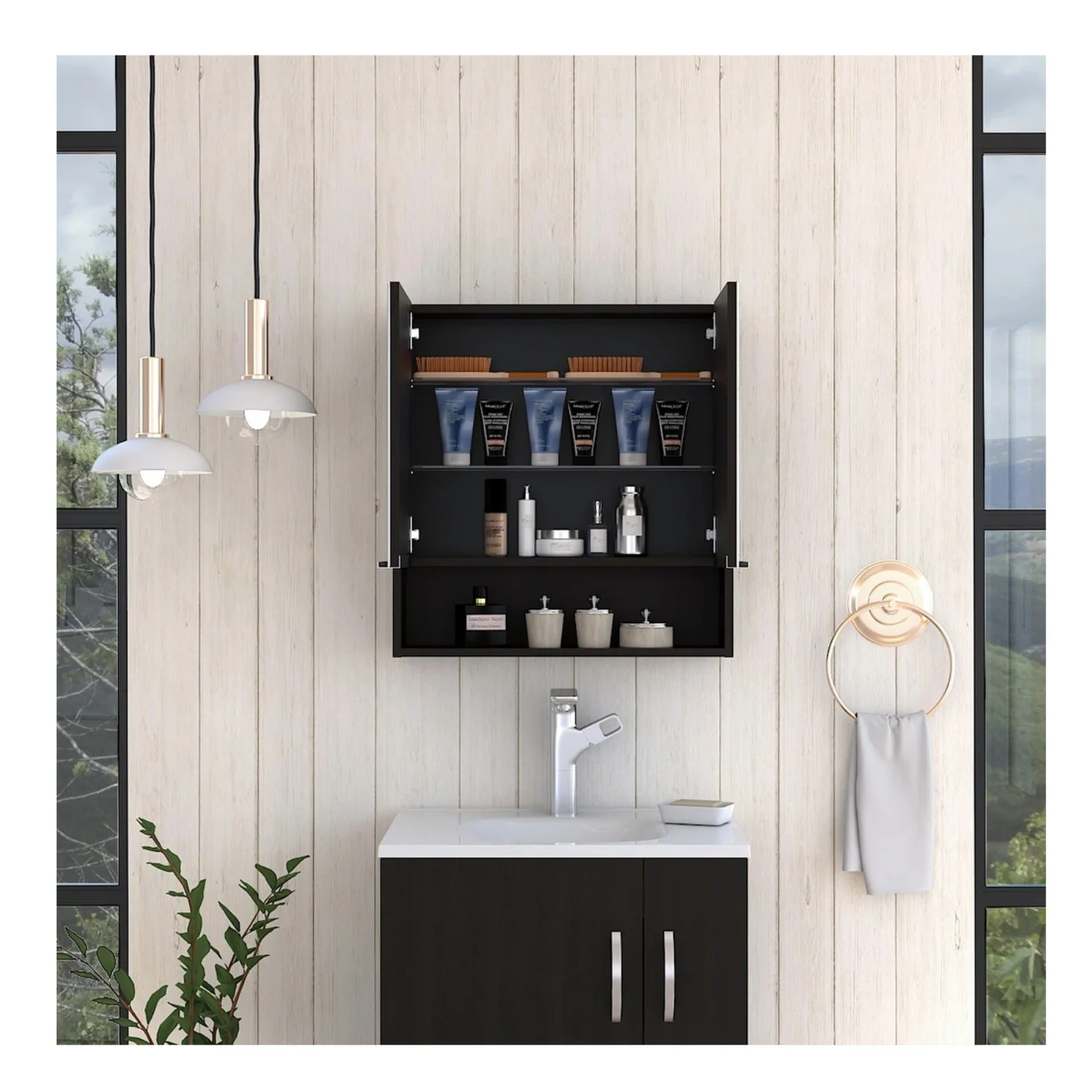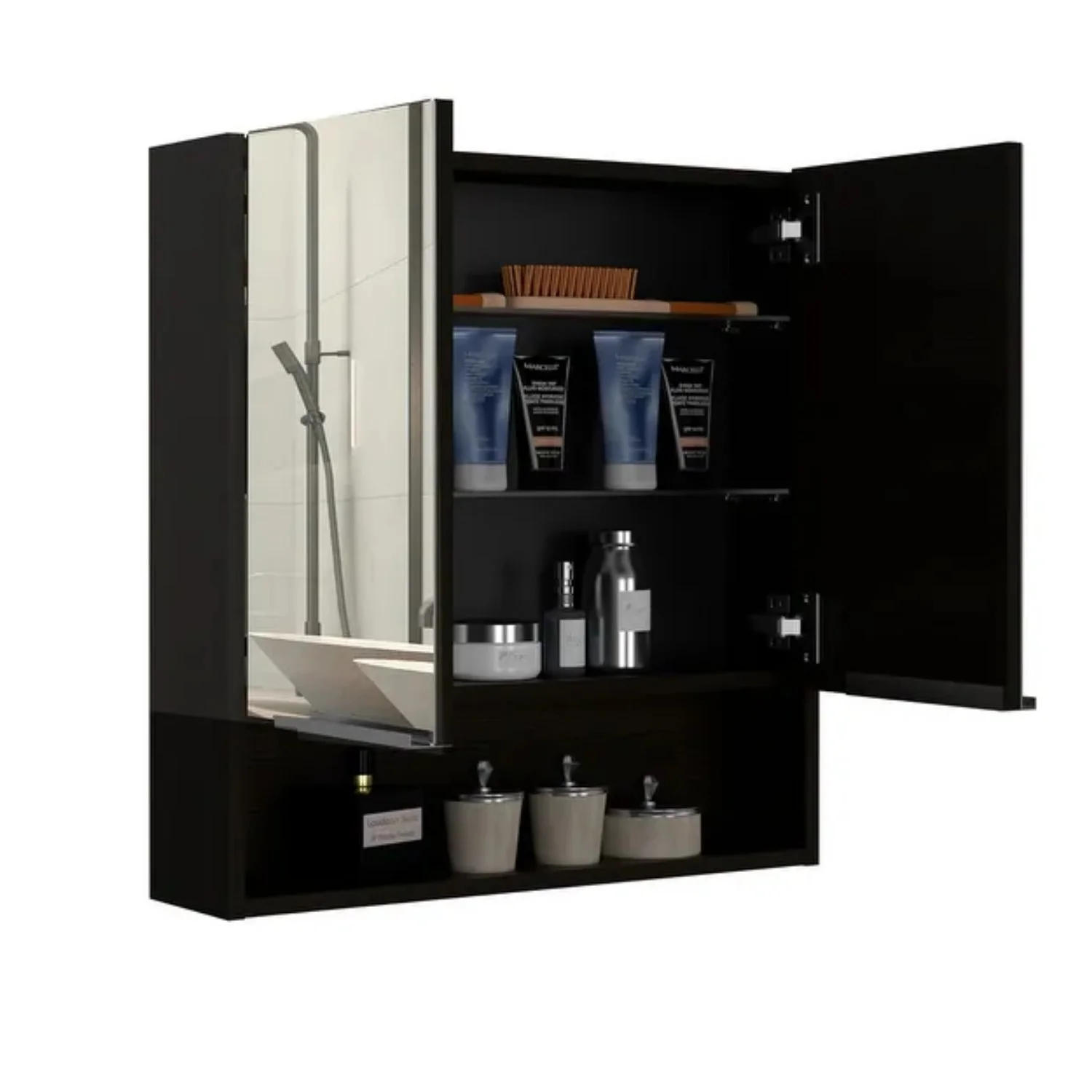 El Estante Pol es un mueble de baño con un diseño moderno y sofisticado en elegante color negro, perfecto para quienes desean dar un toque distintivo y contemporáneo a su espacio. Su frontal incorpora un amplio espejo que no solo es funcional para las tareas diarias, sino que también contribuye a aportar mayor luminosidad y sensación de amplitud al baño. Fabricado en melamina de 18 mm, garantiza resistencia, durabilidad y fácil mantenimiento.