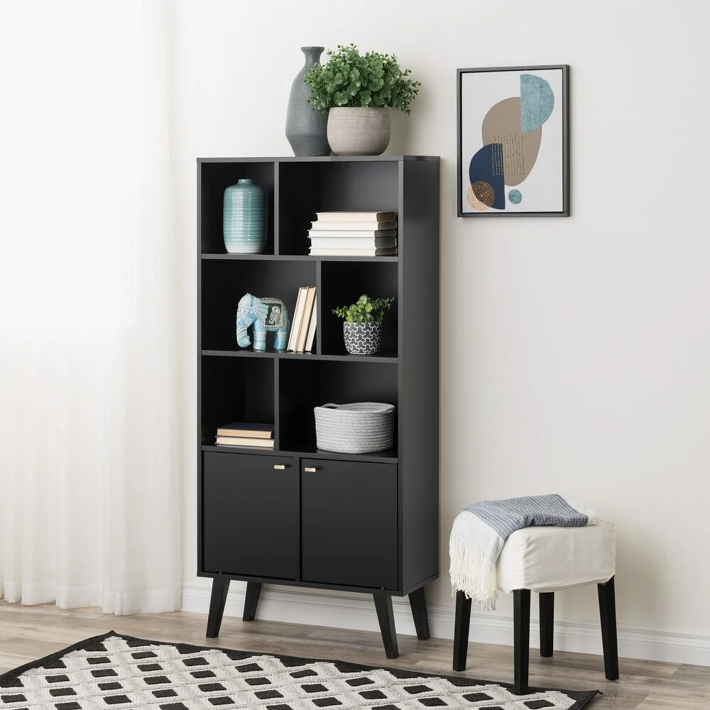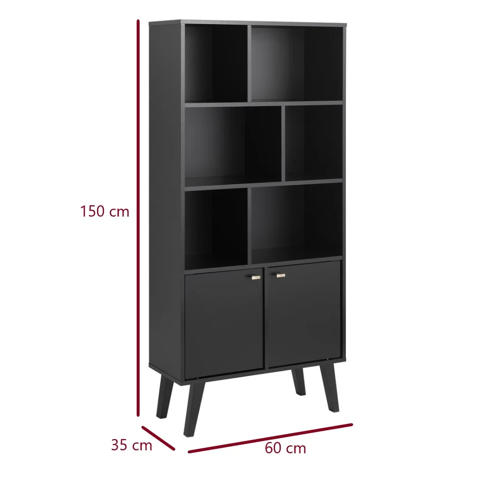 El Librero Shannon destaca por su diseño moderno y elegante, ideal para complementar cualquier espacio contemporáneo. Su acabado en color negro aporta un toque de sofisticación, mientras que las patas de madera negras añaden un contraste sutil y refinado. Con su estructura alta, optimiza el uso del espacio vertical, proporcionando almacenamiento eficiente sin ocupar demasiado espacio en el suelo. Perfecto para quienes buscan un mueble funcional y estilizado que aporte elegancia y estilo a su hogar o oficina.