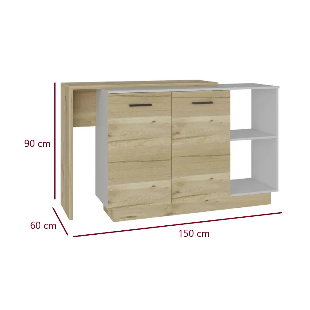 La Mesa Auxiliar Amparos destaca por su diseño estilizado que aporta funcionalidad y estilo a tu cocina. Su acabado en color blanco transmite frescura y luminosidad, mientras que los detalles en color Panela añaden un contraste cálido y natural. Los tiradores negros aportan un toque moderno y sofisticado, creando una pieza que combina perfectamente con decoraciones contemporáneas. Diseñada con atención a cada detalle, la Mesa Auxiliar Amparos es el equilibrio perfecto entre estética y practicidad.