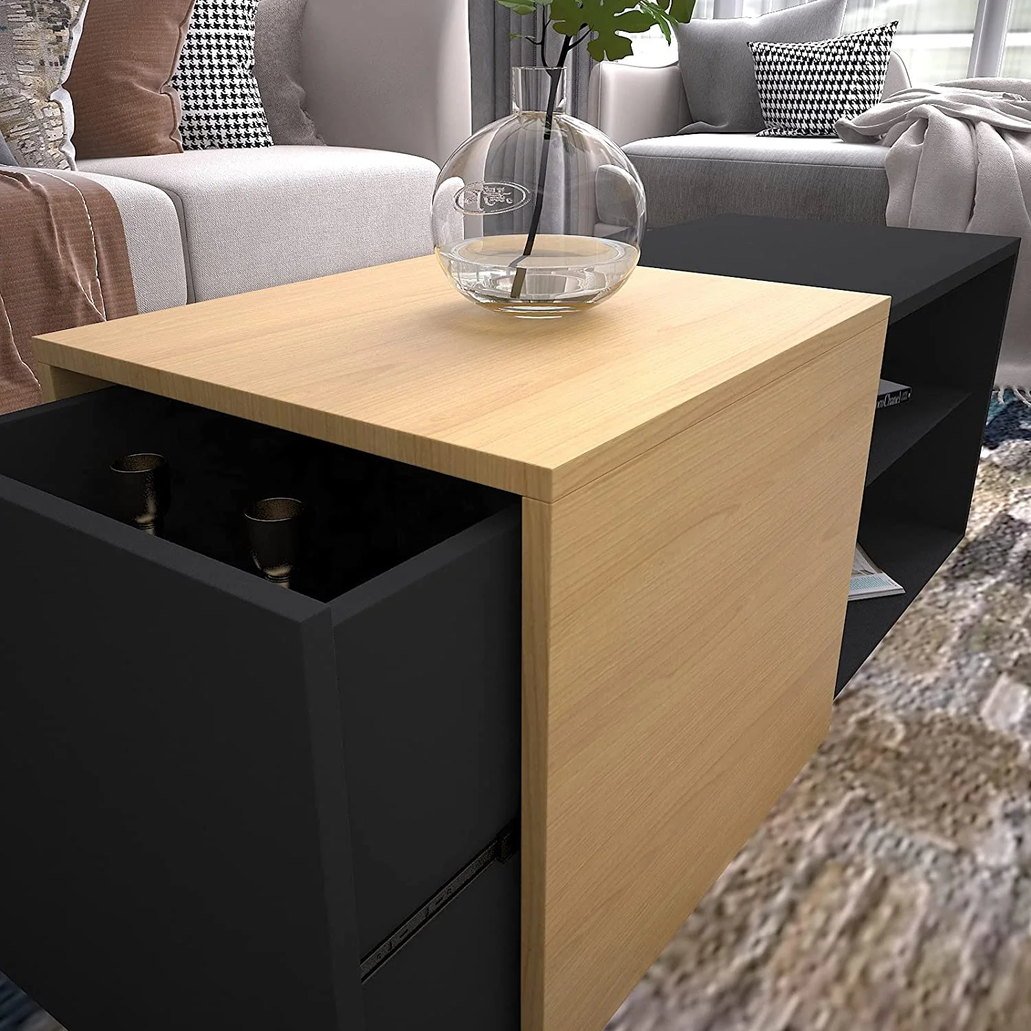 La Mesa de Centro Beyond no solo es decorativa, sino también altamente funcional y práctica. Gracias a su tapa deslizable, ofrece un espacio multiusos oculto debajo, perfecto para organizar controles, revistas, accesorios o incluso elementos decorativos de manera ordenada. Su amplio espacio superior permite colocar adornos, libros o bandejas, convirtiéndola en una mesa versátil que se adapta tanto al uso diario como a ocasiones especiales. Es un mueble resistente, funcional y elegante, pensado para elevar la comodidad y la organización en tu sala.
