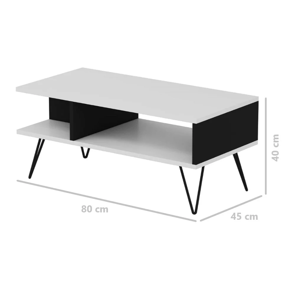 La Mesa de Centro Bilore resalta por su diseño moderno y elegante, ideal para darle un aire sofisticado a tu sala. Su estructura combina el Blanco y Negro de manera armoniosa, logrando un contraste atractivo y contemporáneo. Está equipada con patas de metal en color negro, que no solo refuerzan su solidez, sino que también realzan su estilo decorativo. Fabricada en melamina de 18mm, garantiza una pieza resistente, duradera y con un acabado refinado que se adapta a diferentes estilos de decoración.