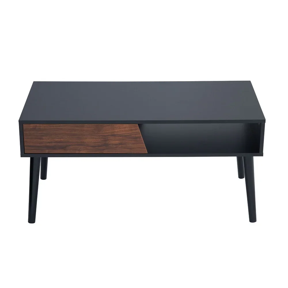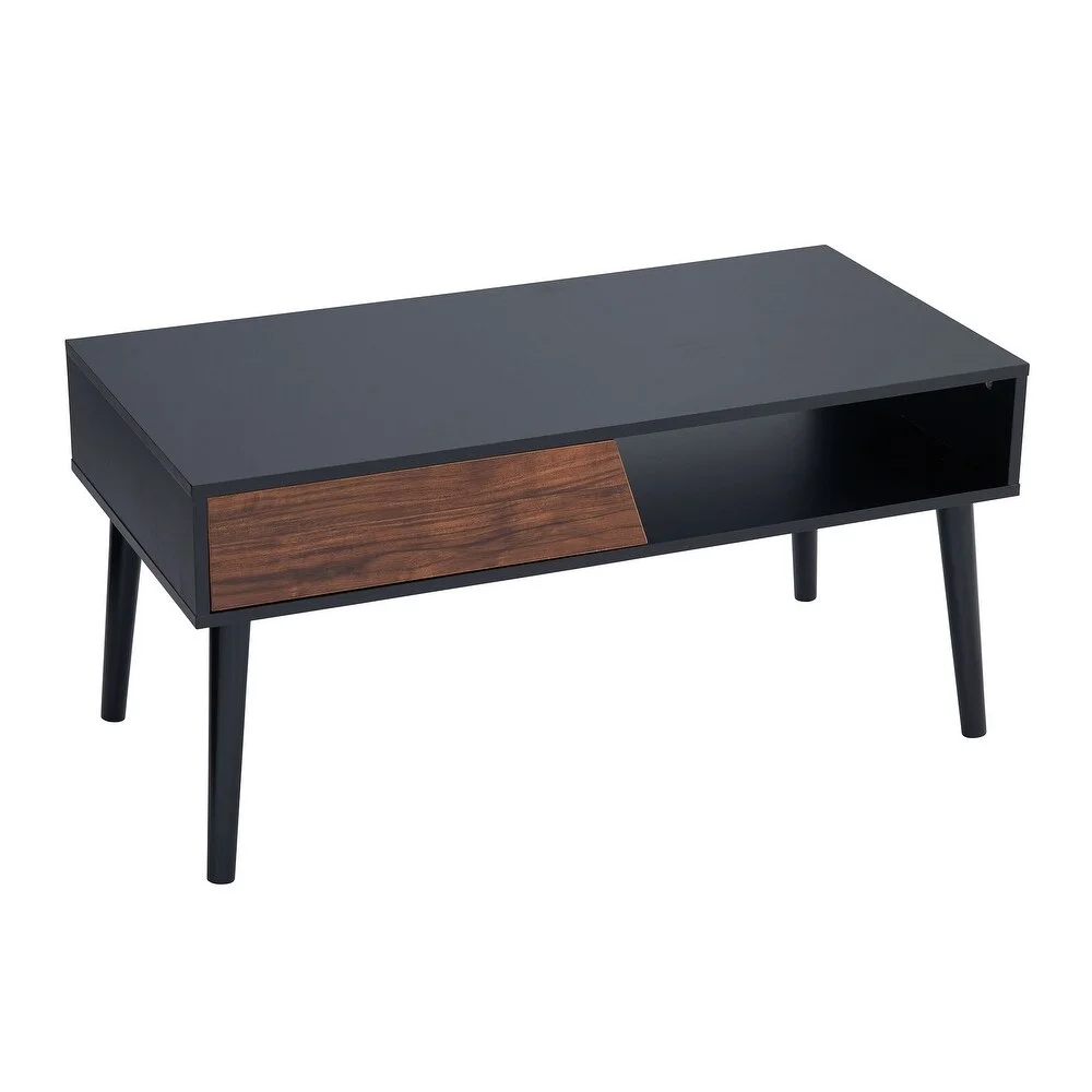 La Mesa de Centro Eevi presenta un diseño moderno en colores contrastantes de Negro y Cacao, que le otorgan una apariencia sofisticada y equilibrada. Las patas de madera añaden un toque natural, creando una mezcla perfecta entre lo moderno y lo cálido. Su diseño elegante se adapta fácilmente a diversos ambientes, convirtiéndola en una pieza central para cualquier sala.