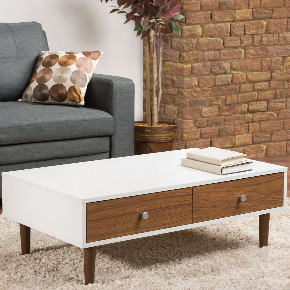 La Mesa de Centro Jak presenta un diseño moderno y atractivo en color Blanco y Gales, que se complementa con patas de madera, brindando un toque natural y sofisticado. Los tiradores plateados añaden un detalle elegante que mejora su apariencia general, convirtiéndola en la pieza central de cualquier espacio contemporáneo.