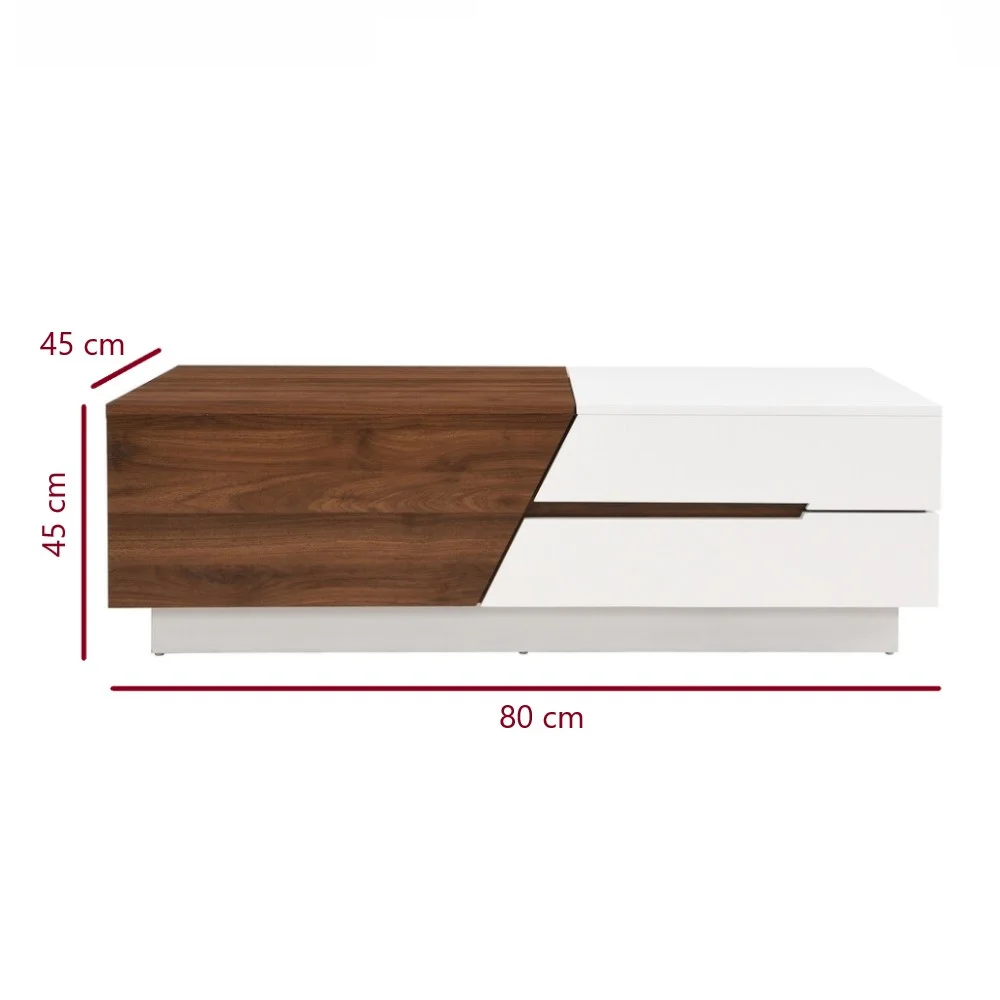 La Mesa de Centro West se destaca por su diseño moderno y elegante, que combina perfectamente el color Blanco con el Nogal Amazónico. Esta armoniosa mezcla de tonos claros y cálidos aporta una sensación de luminosidad y sofisticación a cualquier espacio. Su estructura robusta y líneas limpias hacen de esta mesa una pieza clave en la decoración de tu hogar. Además, su diseño moderno no solo es atractivo visualmente, sino que también se adapta a diferentes estilos de interiores, aportando un toque de modernidad y refinamiento a tu sala de estar.