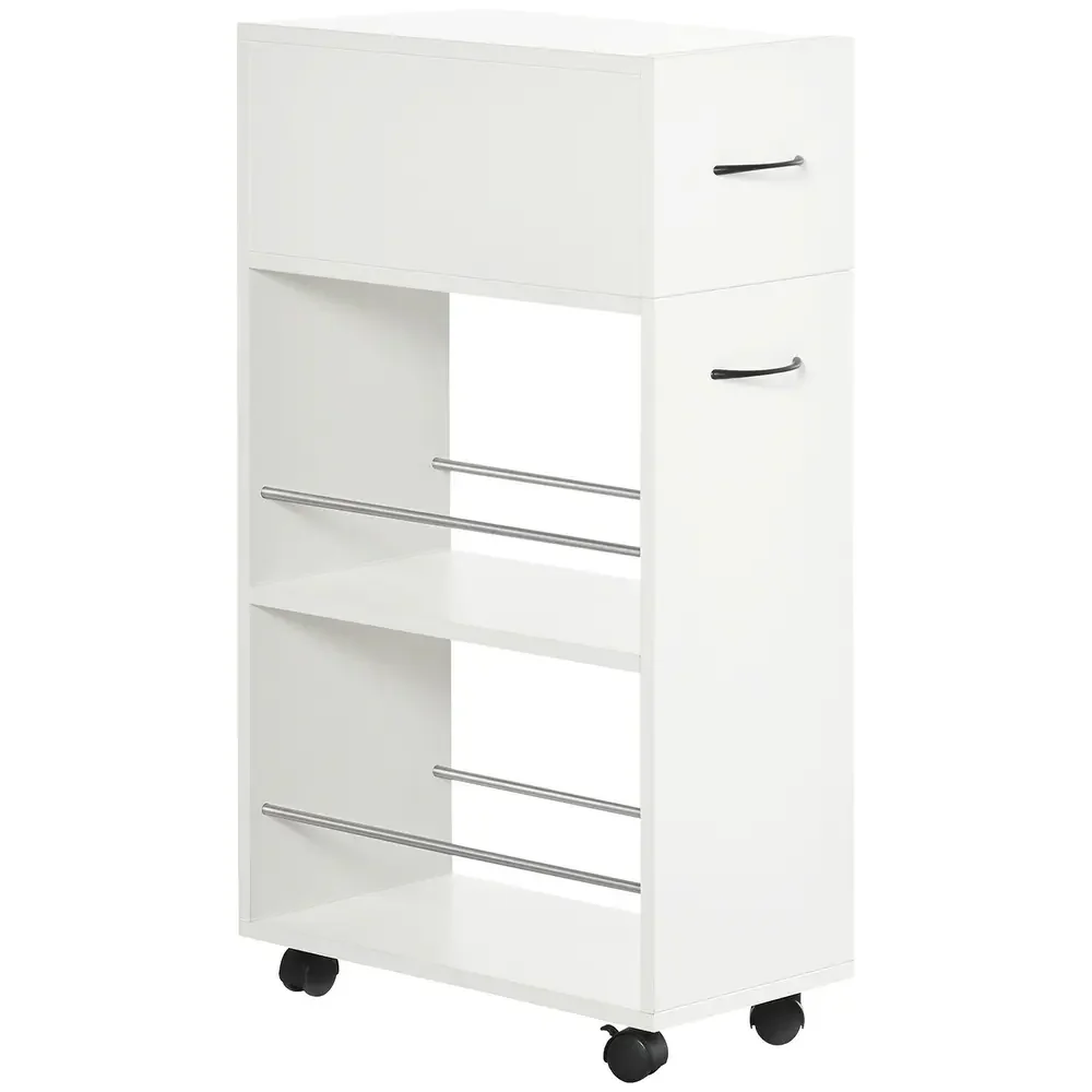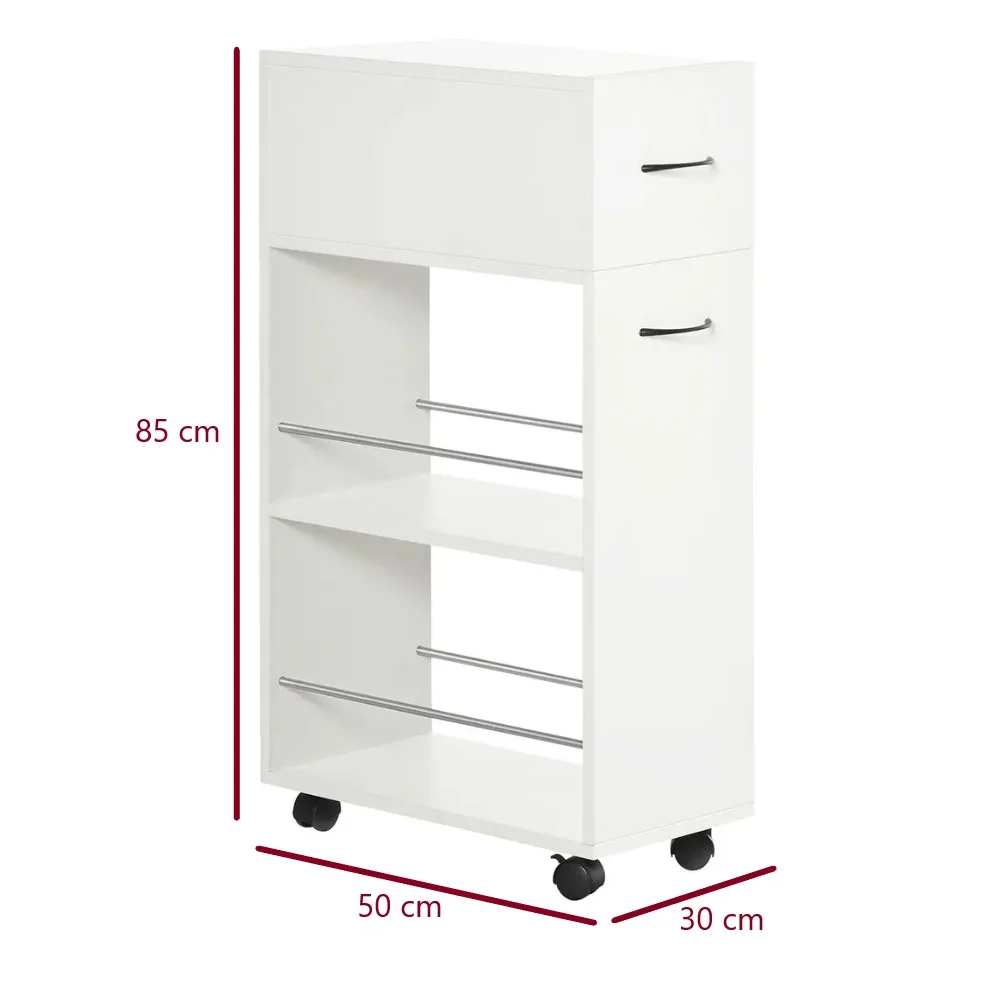 El Organizador Marcela está diseñado para ofrecer una solución práctica y eficiente en cualquier espacio. Fabricado en melamina de 18 mm, garantiza durabilidad y resistencia para el uso diario. Cuenta con un pequeño cajón equipado con correderas telescópicas, que permite un deslizamiento suave y cómodo para almacenar artículos pequeños. Además, sus prácticas repisas proporcionan un lugar ideal para organizar utensilios y otros productos esenciales. Las ruedas en la parte inferior facilitan su movilidad, permitiéndote adaptarlo fácilmente a cualquier rincón. Compacto y funcional, el Organizador Marcela es la opción perfecta para optimizar tu espacio con estilo.