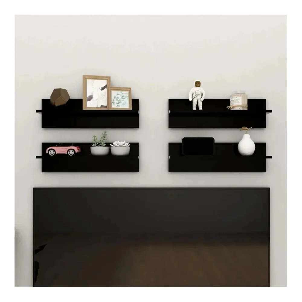 La Repisa Connor x4 destaca por su diseño moderno y minimalista, ideal para quienes buscan un estilo sencillo pero con gran impacto visual. Se presenta en un elegante color Negro, que añade sofisticación y versatilidad, permitiendo que combine con diferentes tipos de decoración. Este juego incluye 4 repisas individuales, cada una de un solo nivel y con un diseño horizontal, lo que brinda una estética limpia y equilibrada. Su estilo minimalista aporta frescura a los ambientes, mientras que la melamina de 18 mm asegura un acabado prolijo, resistente y duradero que conserva su apariencia elegante con el paso del tiempo.