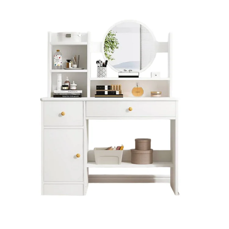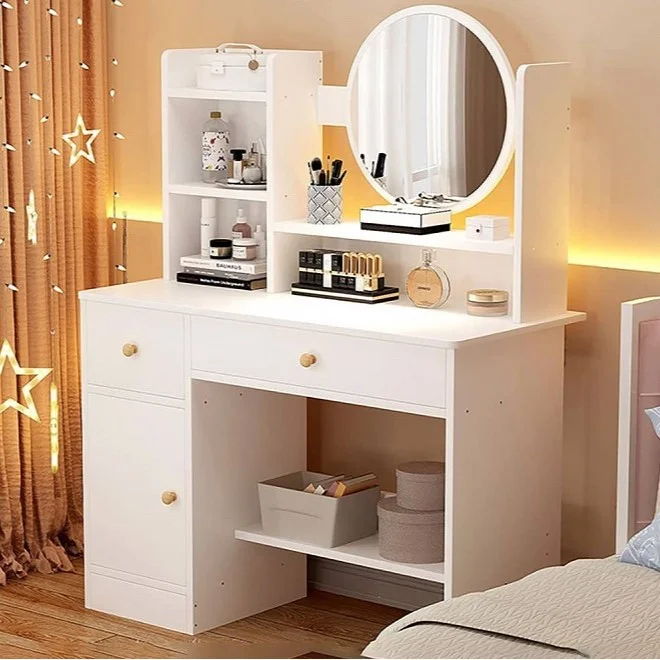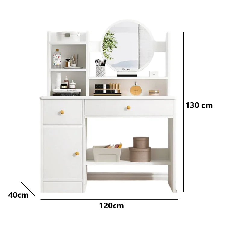 El Tocador Kira no solo es un mueble decorativo, sino también un aliado perfecto para la organización y comodidad diaria. Gracias a sus dos cajones con correderas telescópicas, ofrece un espacio práctico para guardar maquillaje, accesorios, joyas o productos personales, manteniendo todo en orden y al alcance de la mano. Su superficie amplia y cómoda permite apoyar objetos de uso cotidiano o decorativos, mientras que el espejo integrado facilita la rutina de arreglo personal de manera práctica y funcional. Un tocador pensado para quienes valoran la organización, la estética y la utilidad en un solo mueble.