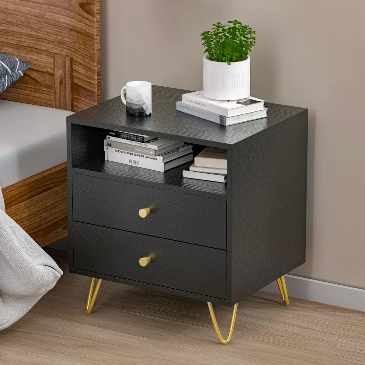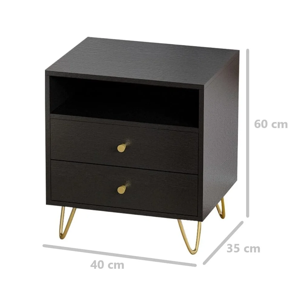 El Velador Adaleb destaca por su estilo moderno y sofisticado, pensado para aportar un aire elegante a cualquier dormitorio. Su acabado en color Wengue brinda un toque cálido y contemporáneo, mientras que las patas y tiradores en color dorado añaden un contraste refinado que realza su presencia. Fabricado en melamina de 18mm, este velador ofrece no solo un diseño atractivo, sino también una estructura resistente y duradera, ideal para un uso diario. Sus líneas limpias y estilizadas lo convierten en una pieza versátil que se adapta con facilidad a diferentes estilos de decoración.