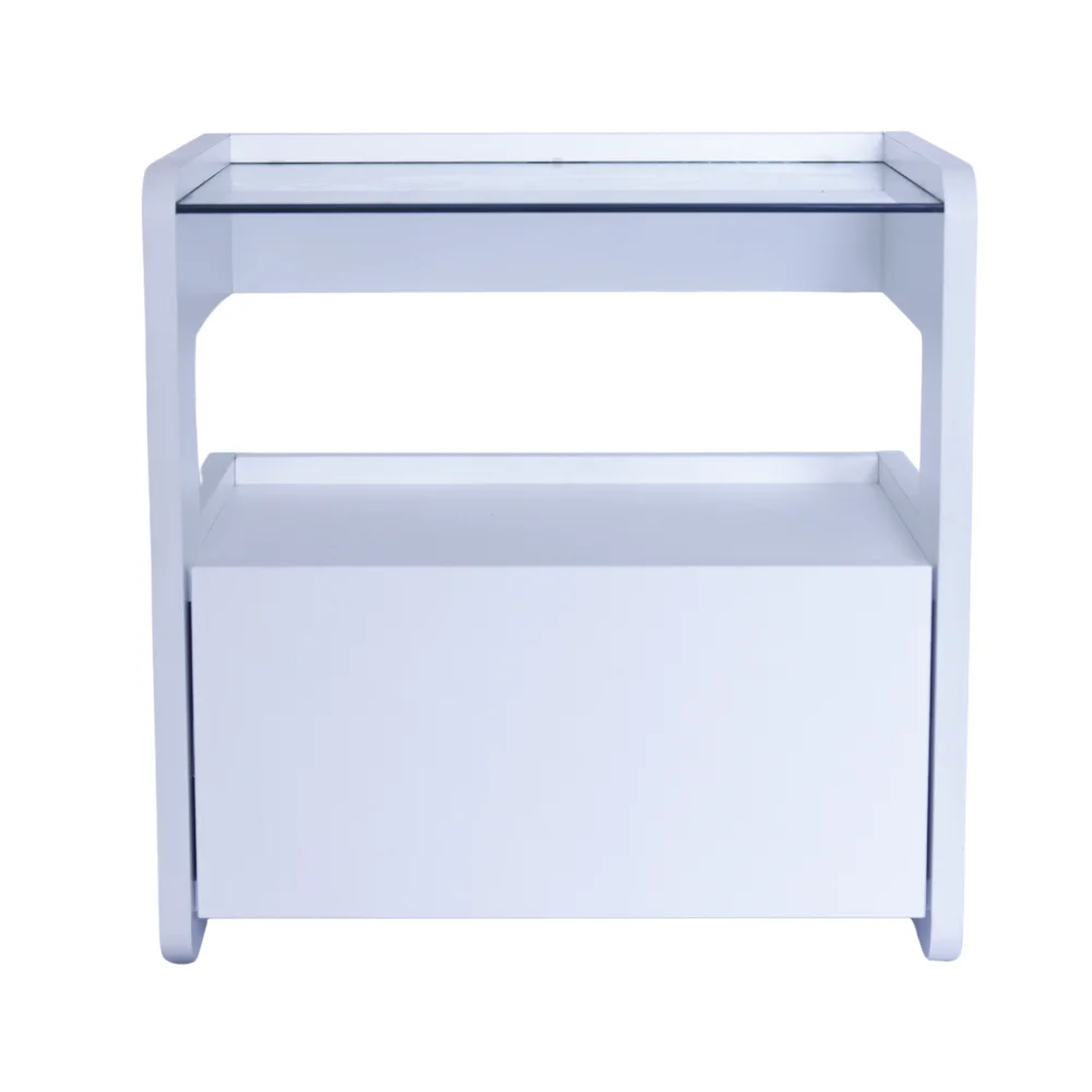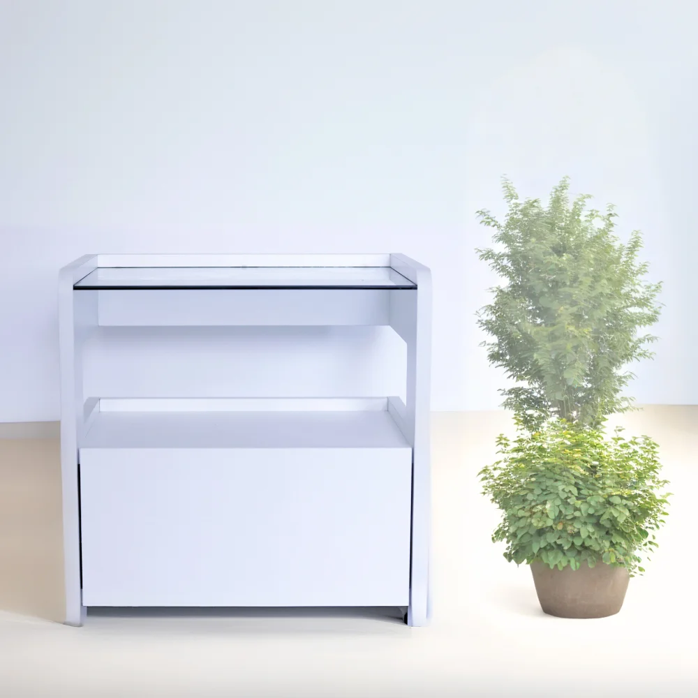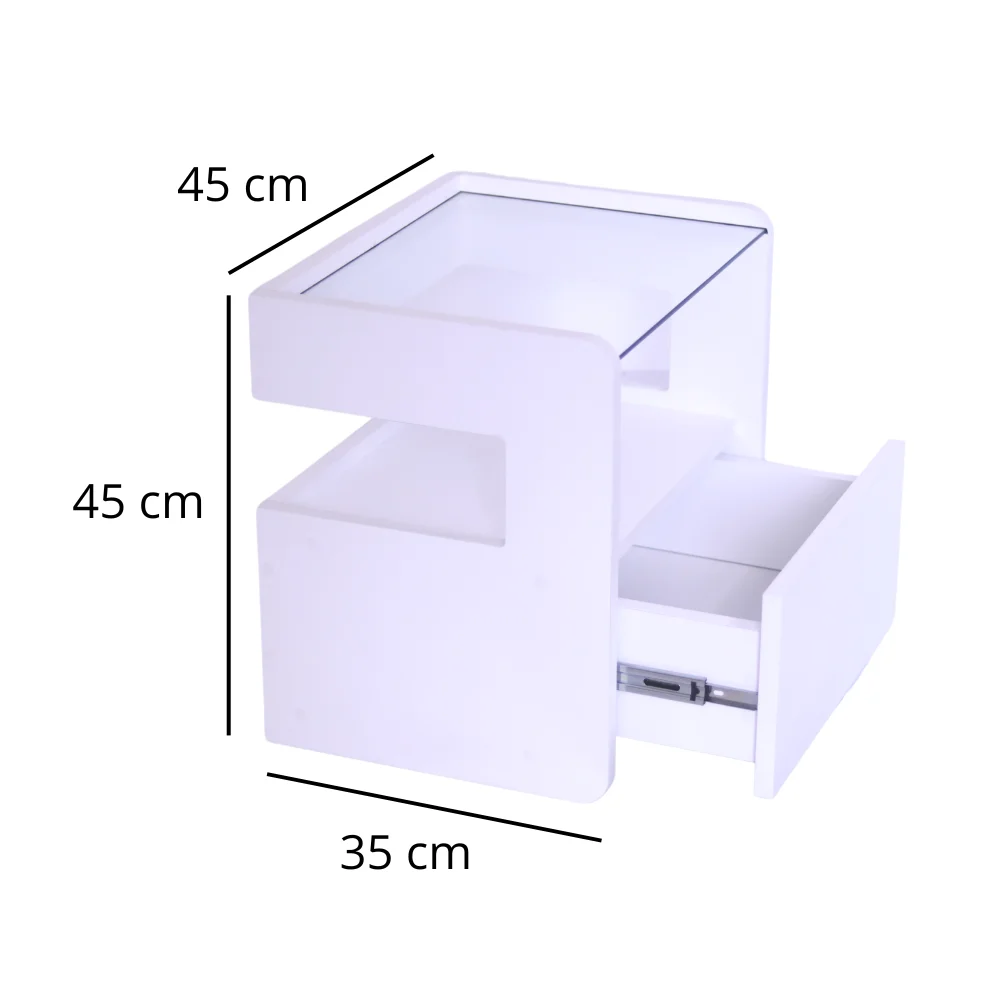 Además de su atractivo diseño, el Velador Ares ofrece un práctico espacio de almacenamiento gracias a su amplio cajón con correderas telescópicas, que permite un deslizamiento suave y seguro. Es ideal para organizar objetos de uso diario como libros, accesorios personales o dispositivos electrónicos, manteniéndolos siempre a la mano. Su cubierta de vidrio no solo añade elegancia, sino que también brinda un espacio resistente y fácil de limpiar, convirtiéndolo en un mueble funcional y decorativo que aporta orden y comodidad al dormitorio.