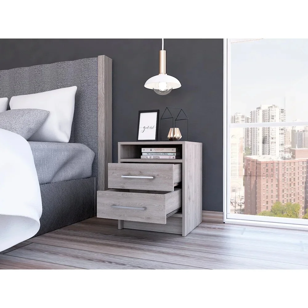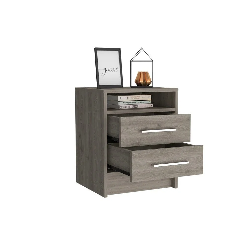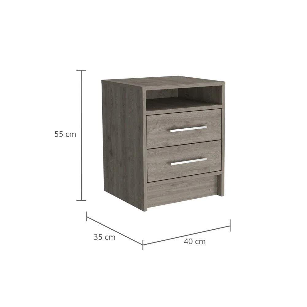 Cuenta con dos cajones amplios con correderas telescópicas, que aseguran un deslizamiento suave y silencioso, ideales para organizar objetos de uso diario como accesorios, documentos, dispositivos electrónicos o artículos personales. Su estructura sólida y su capacidad de almacenamiento lo convierten en un aliado perfecto para mantener el orden, combinando a la perfección estilo, comodidad y utilidad en un solo mueble.