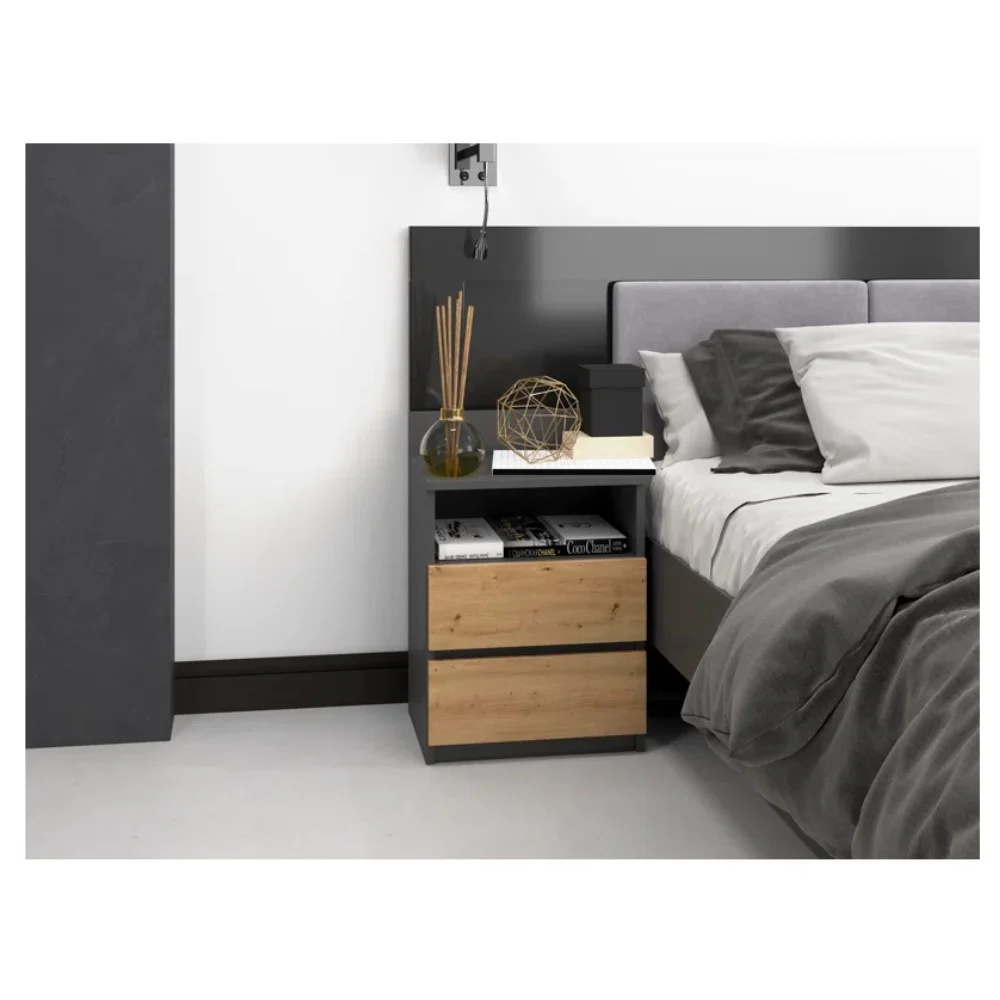 Dispone de dos cajones amplios con correderas telescópicas, que aseguran un deslizamiento suave y cómodo en el uso diario. Su estructura compacta lo convierte en una excelente opción para organizar desde objetos personales hasta accesorios, libros o elementos de uso cotidiano. Con su diseño versátil y moderno, este velador combina perfectamente la estética con la utilidad, convirtiéndose en un aliado indispensable en tu dormitorio.