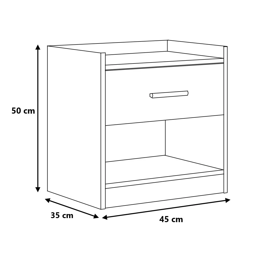 El Velador Herval está fabricado en melamina 18mm, lo que le proporciona una alta resistencia y durabilidad. Con un cajón con correderas telescópicas, ofrece un almacenamiento cómodo y de fácil acceso para tus objetos más pequeños. Su diseño práctico es ideal para mantener tus pertenencias organizadas y a la mano, mientras que su elegante estética lo convierte en una pieza clave en cualquier habitación. Con el Velador Herval, puedes disfrutar de un mueble que no solo cumple su función, sino que también añade un toque de estilo único a tu espacio.
