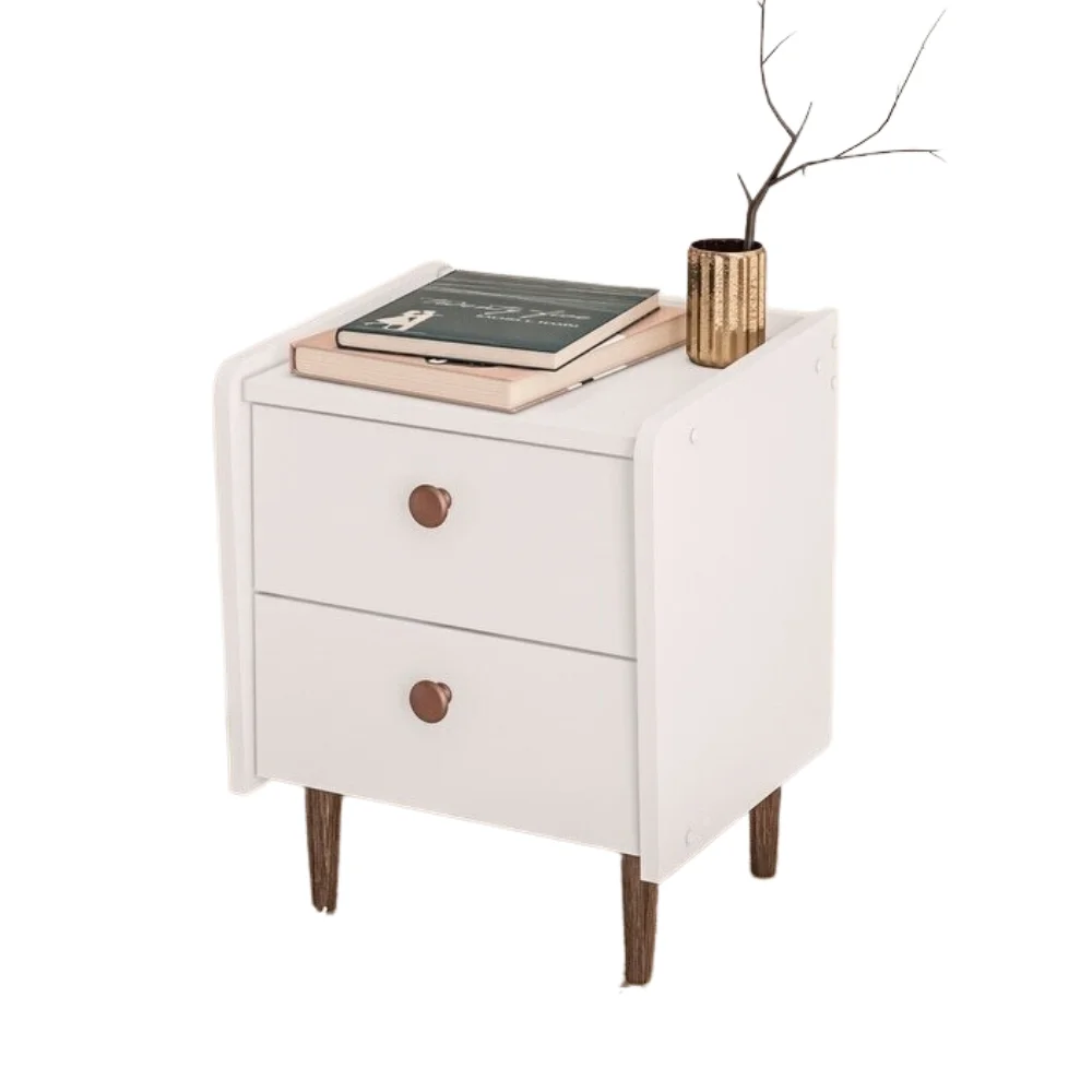El Velador Lawi destaca por su diseño elegante y atemporal, ideal para aportar un aire fresco y moderno al dormitorio. Su acabado en color Blanco brinda luminosidad y versatilidad, mientras que las patas y tiradores de madera añaden un contraste cálido y natural que lo hace resaltar en cualquier ambiente. Fabricado en melamina de 18mm y con finos acabados, este velador combina estilo y calidad en una sola pieza que realza la decoración de tu habitación.