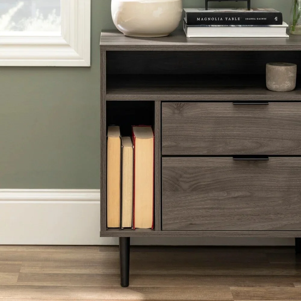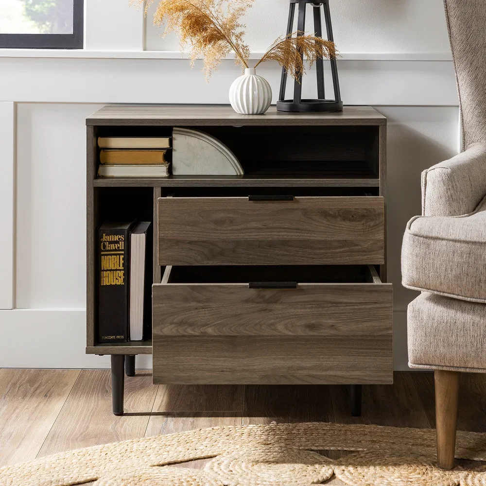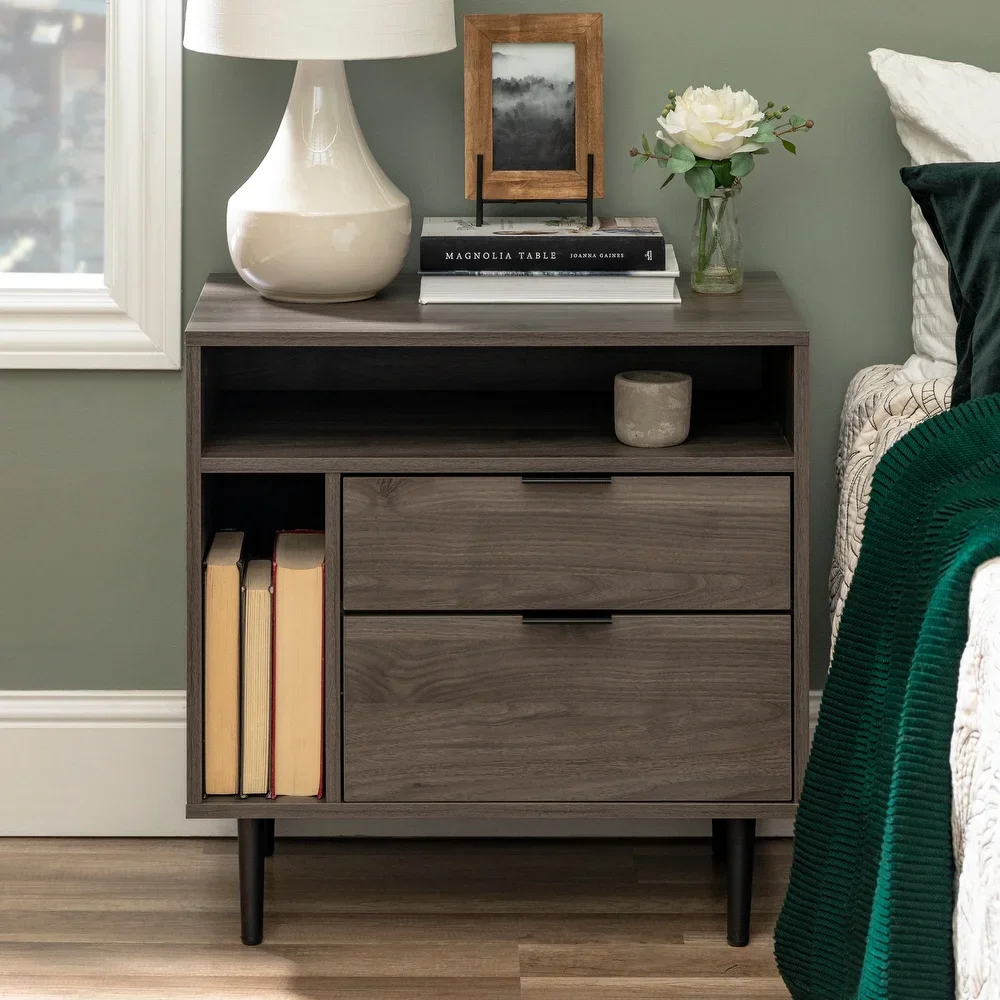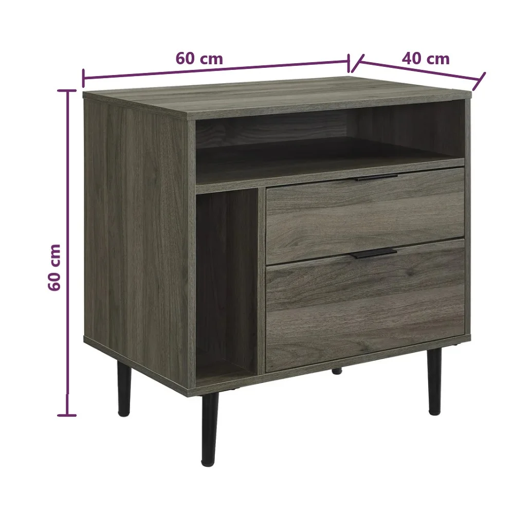 Cuenta con dos cajones amplios con correderas telescópicas, lo que garantiza un deslizamiento suave, cómodo y duradero. Su distribución permite guardar de forma ordenada objetos personales, accesorios o ropa ligera, manteniendo todo siempre a tu alcance. Gracias a su firmeza y resistencia, este velador no solo aporta elegancia, sino también la comodidad y durabilidad que buscas en tu mobiliario.